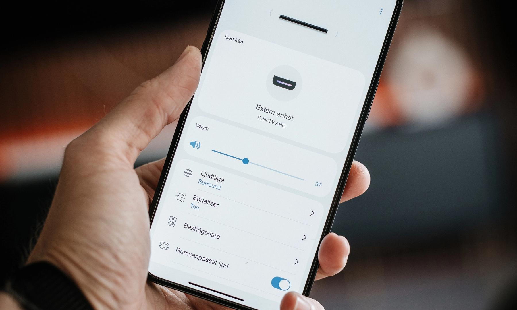 I appen finns en toggle för Rumsanpassat ljud (eller "SpaceFit Sound"), men jag upplever ingen skillnad vid A-B jämförelse...?