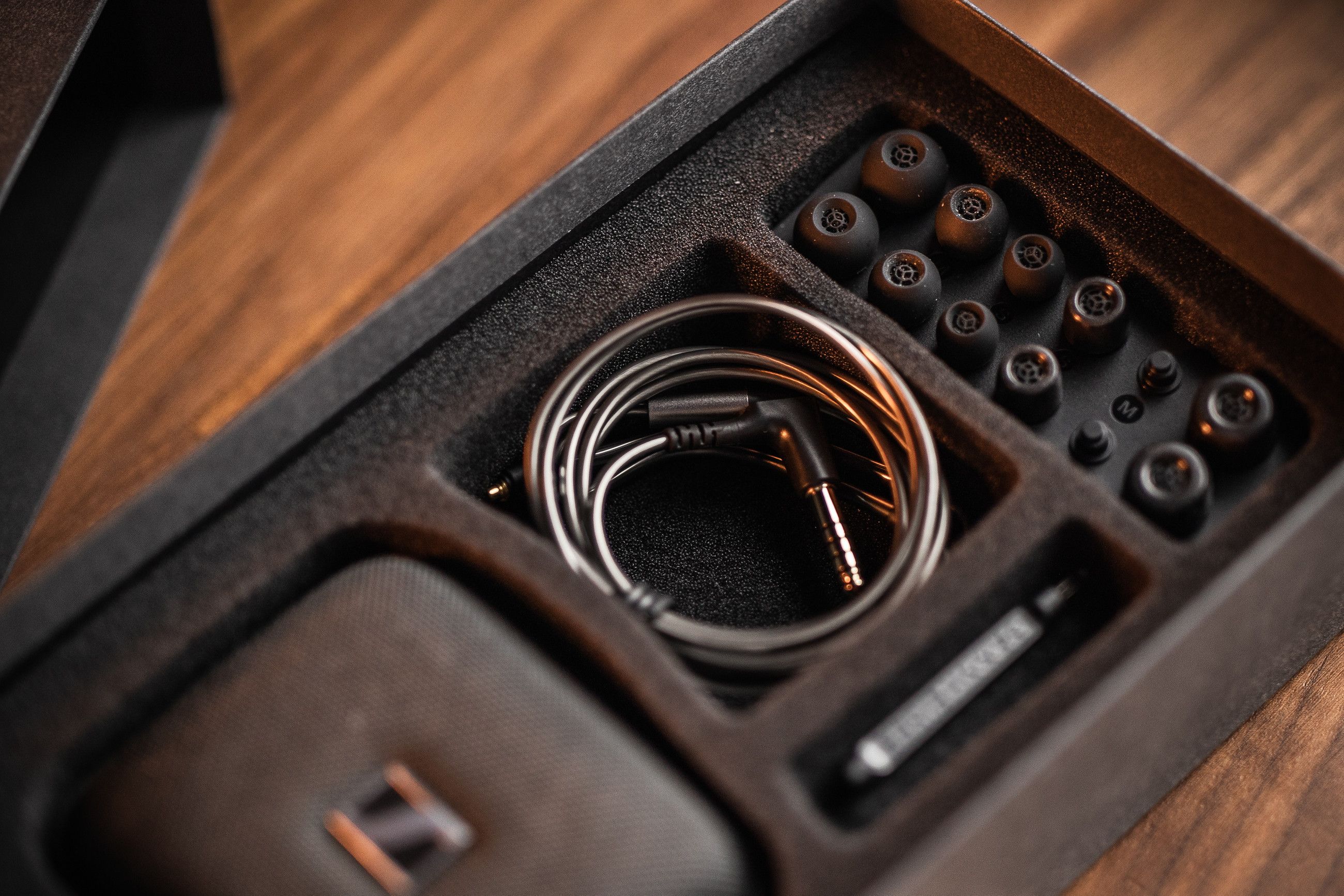 Du får liksom IE 900 med en komplett uppsättning öronadaptrar i olika storlekar, inklusive varianter i skum (som jag kom att föredra) och en extra avtagbar hörlurskabel med en 4,4 mm balanserad kontakt i ena änden. Dock ingen tredje kabel med en balanserad 2, 5mm-variant den här gången.