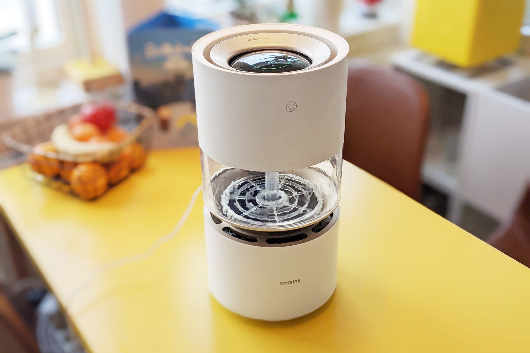 Innovativa Smartmi har ett nytt sätt att luftfukta. Genom att skjuta vatten uppåt skapas det "regn" och där luften strömmar igenom blir den återfuktad på ett naturligt sätt. Design och funktionalitet är viktigt, vilket märks i deras produkter. Enligt Smartmi så är deras fläkt 50% effektivare än konkurrenters genom att det är mer luft som strömmar genom vattendropparna och på så sätt skapar mer fukt på kortare tid. Dessutom renas allt med polymerinloppsluftfilter och vattenreturfilter för att få bort luftföroreningar.