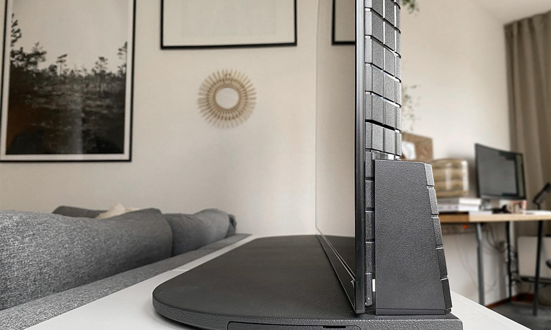 Lite dumt är däremot att det inte finns plats för någon soundbar oavsett åt vilket håll TV:n monteras (mer om ljudet snart!). Positivt är dock att foten gör att TV:n står ovanligt stadigt. Värt att notera är att TV:n givetvis också går att väggmontera om man önskar göra det.