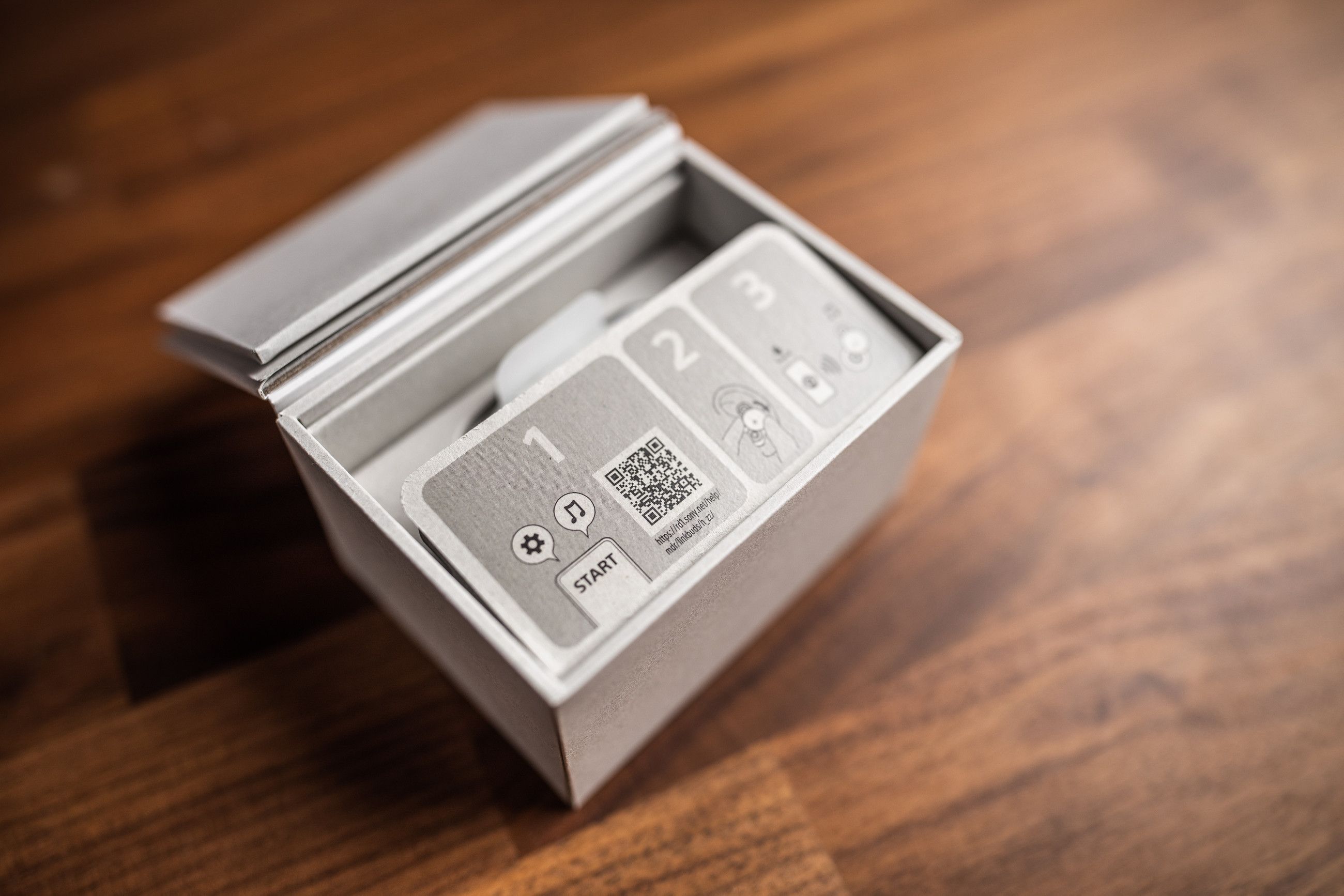 Du hittar dock en sedvanlig USB-A till USB-C-laddkabel (tillverkare, börja köra USB-C rakt igenom, snälla!), bruksanvisningar, extra öronadaptrar i hela 5 (totalt 6) olika storlekar, samt en QR/accesskod för gratis provperiod av 360 Reality Audio (Sonys variant av objektbaserat ljud likt Dolby Atmos) via kompatibel streamingtjänst, t ex Tidal och Deezer. Dock får jag bara upp förslag på ett telefonnummer att ringa när jag scannar den, ingen webblänk. Hm...