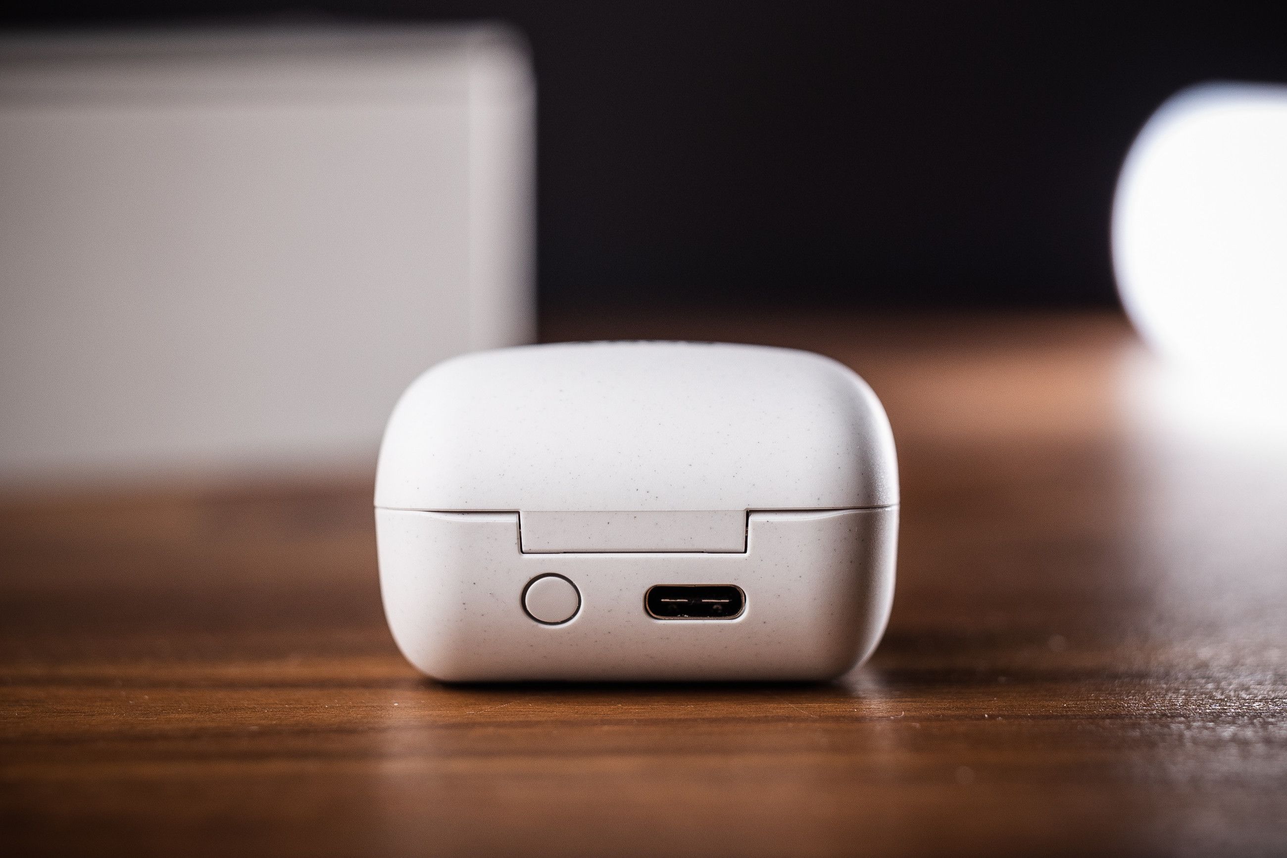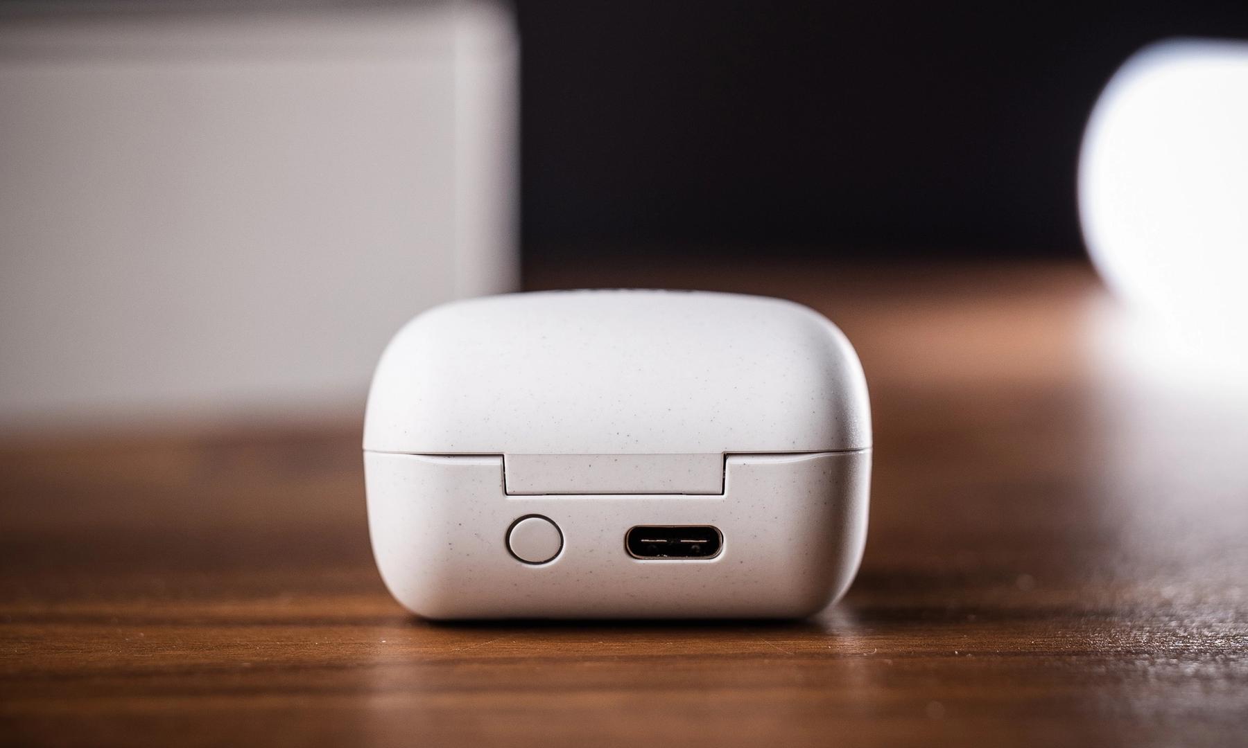 Både etui och lurar är tillverkade i återvunnen plast som liksom C500-modellen har lite av en äggskal-känsla över sig. Du kan välja mellan vit och mörkgrå finish.