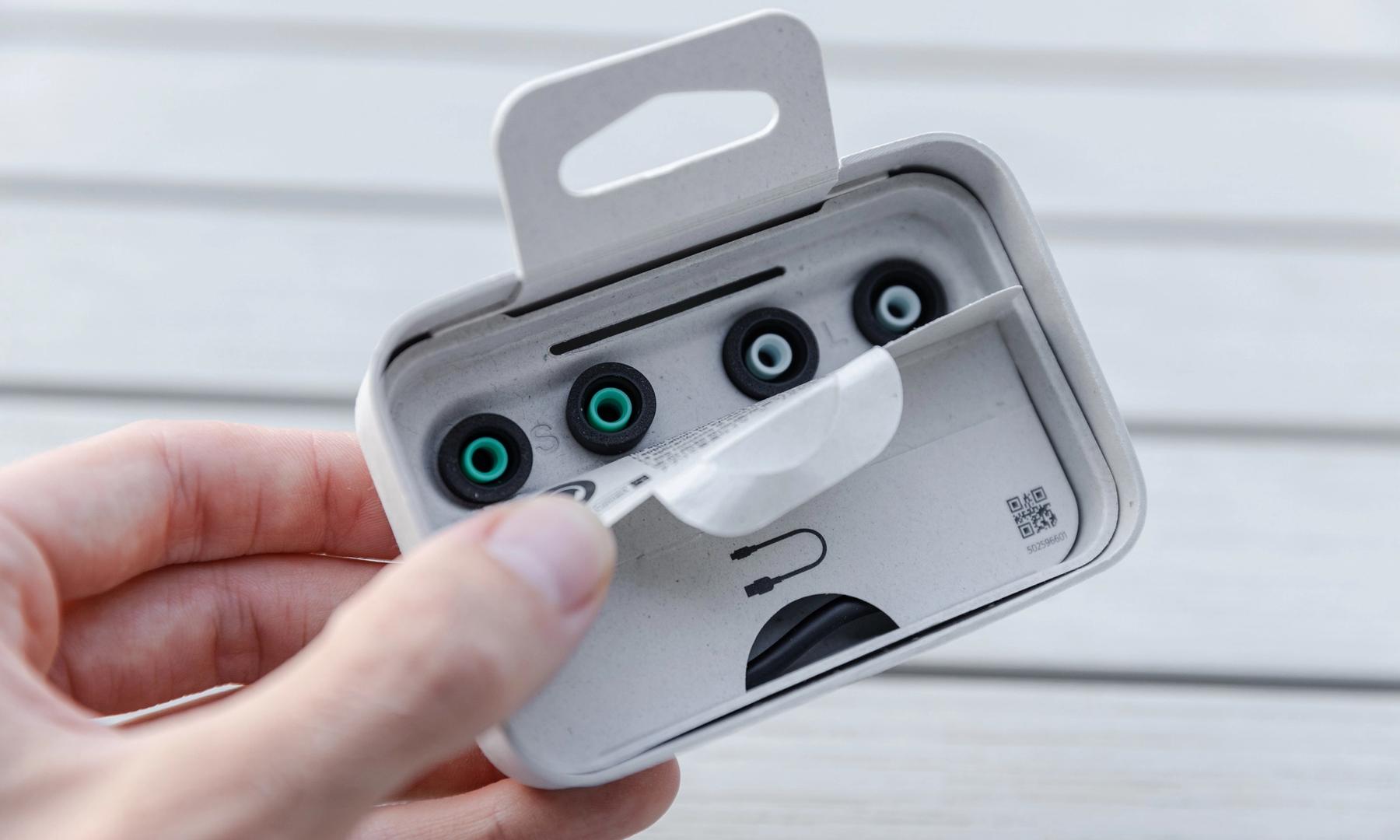 Det första man lägger märke till med WF-1000XM4 är den udda paketeringen som ser ut och känns som lådan jag plockar ägg ur inför varje morgonfrukost. Jag gissar att den är sjukt miljövänlig... och det är väl bra det.