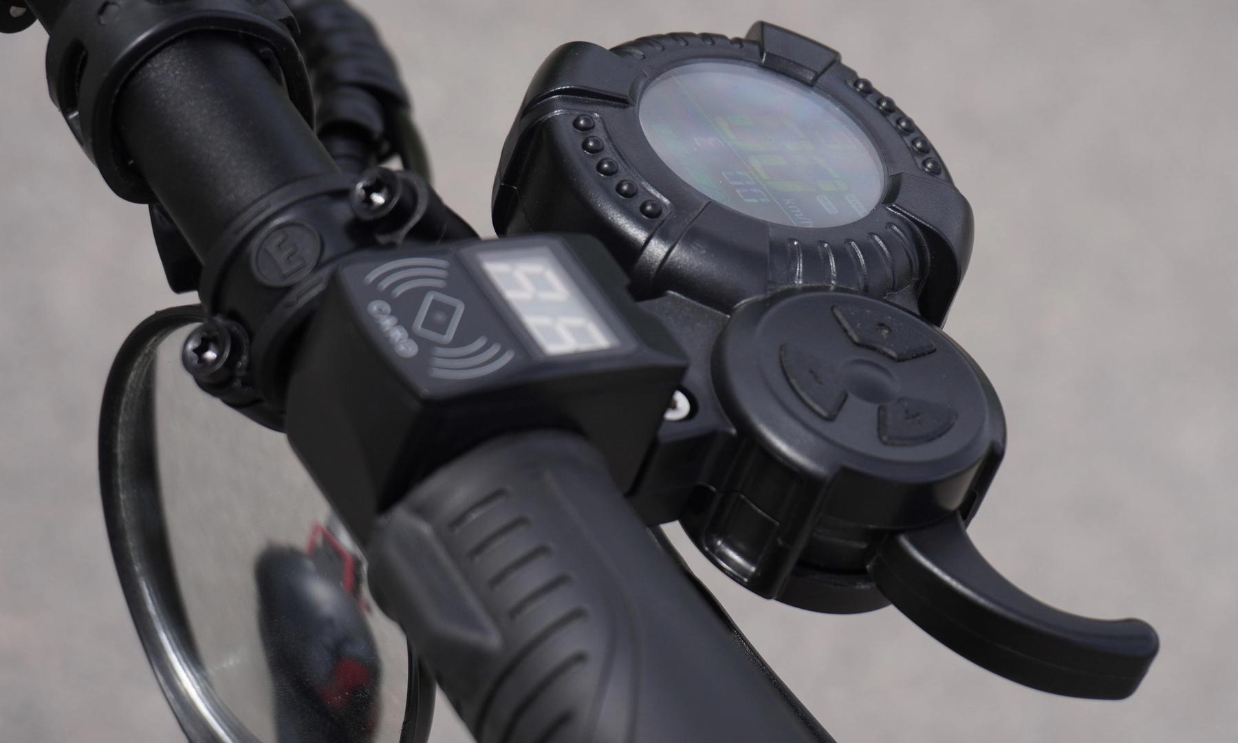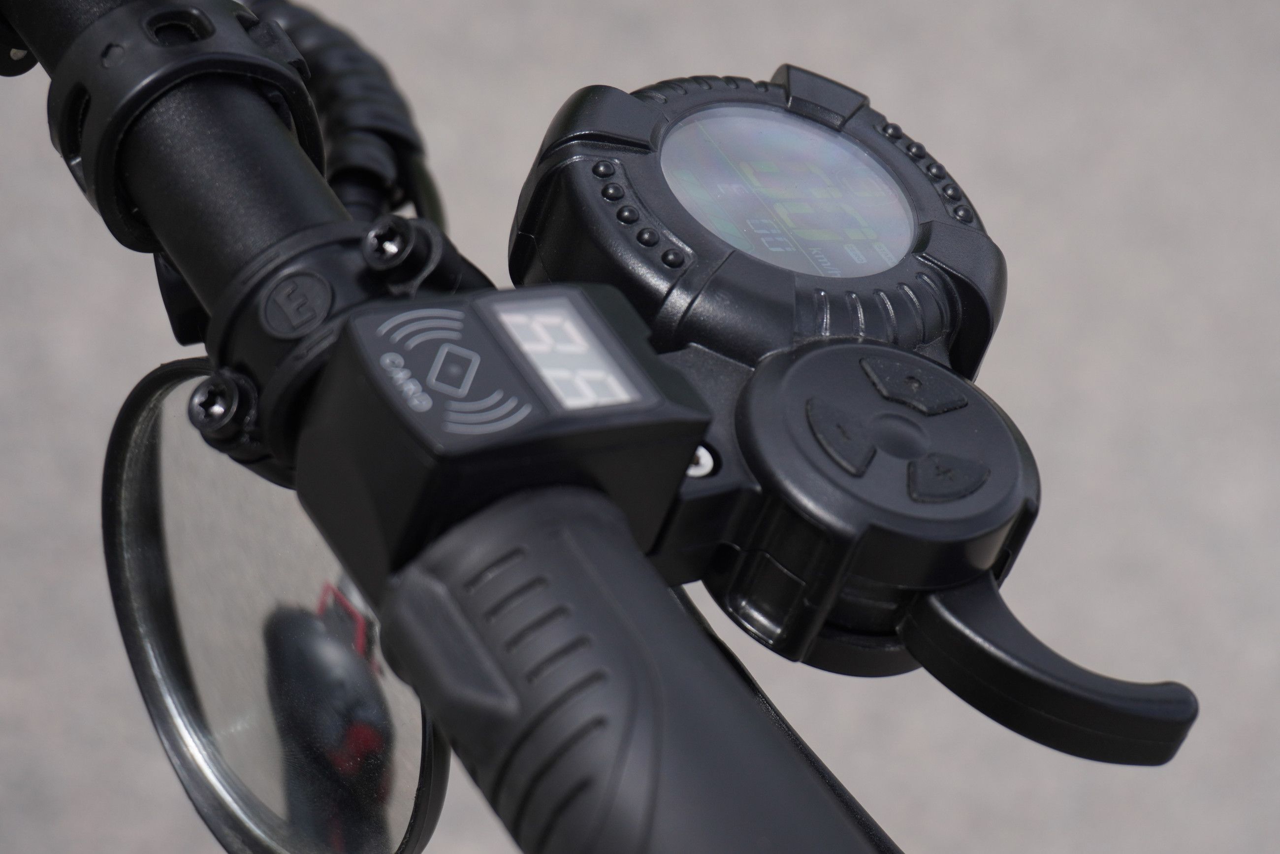 När det gäller säkerhet vill jag också nämna att den är utrustad med NFC. För att starta scootern behöver du en bricka som är kopplad till scootern och som blippar på displayen. Utan brickan går den inte att starta.