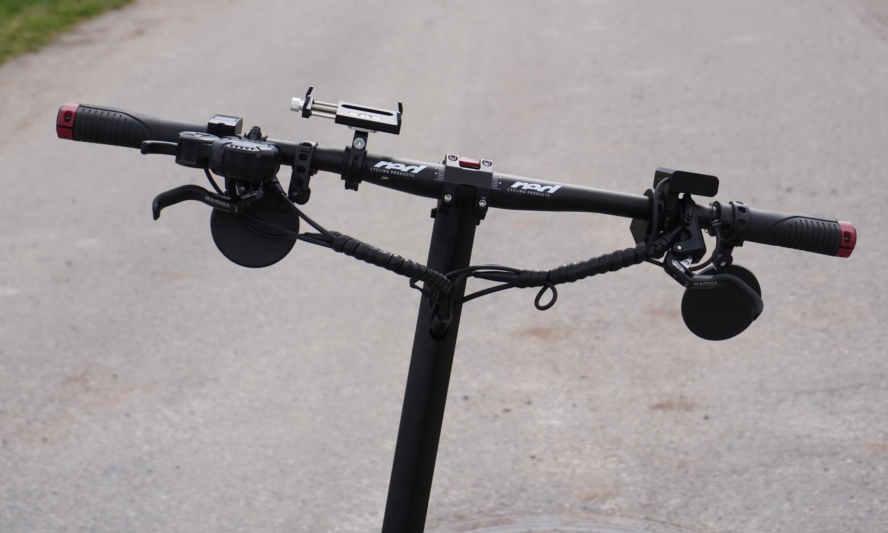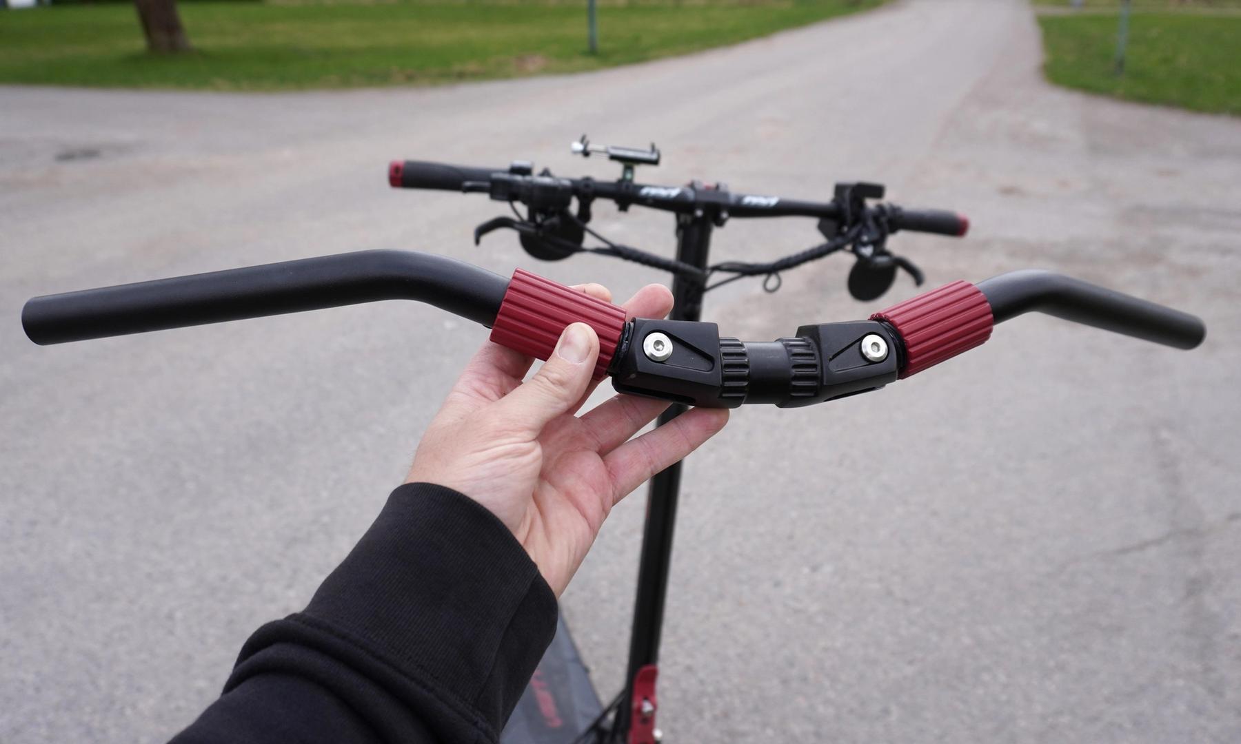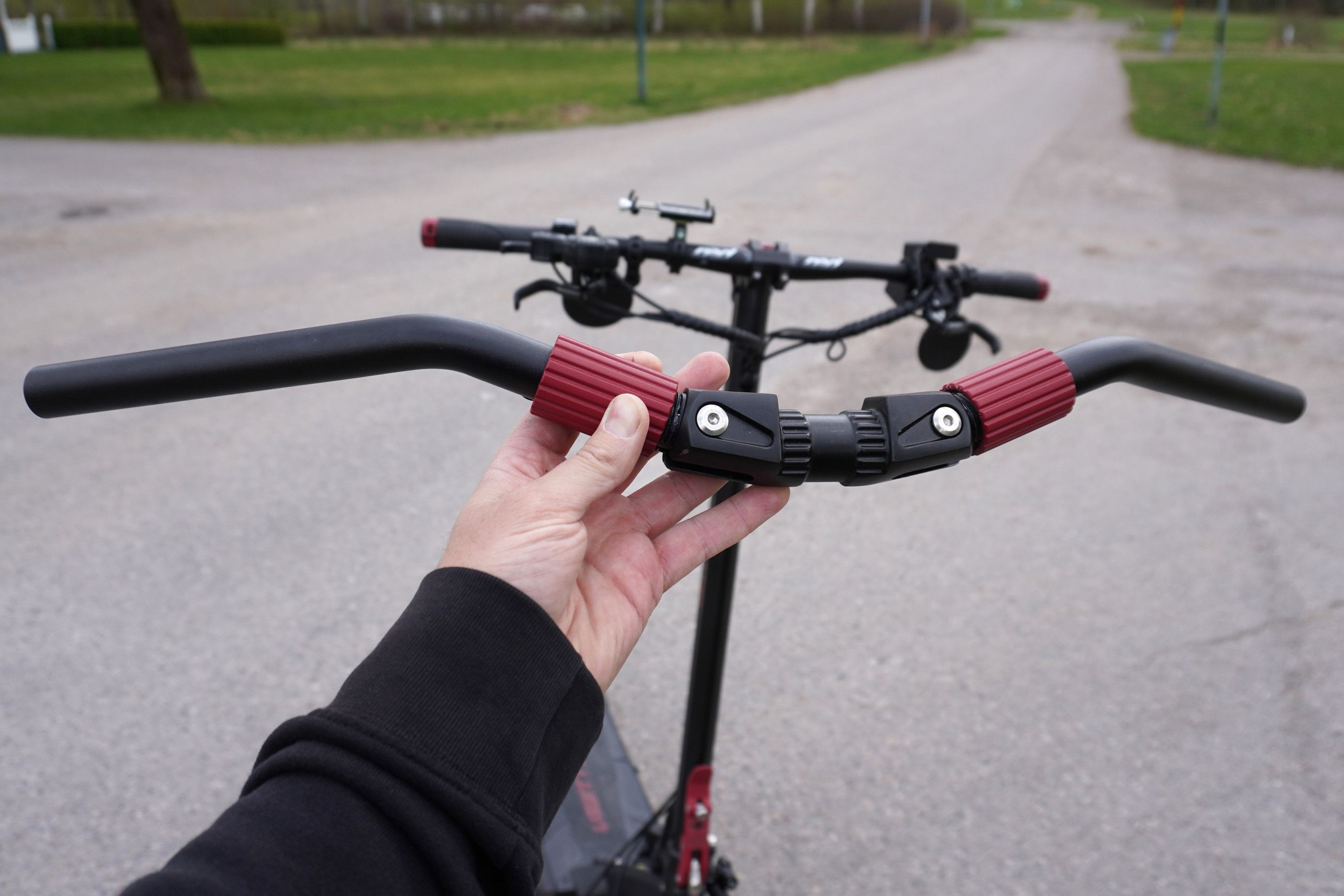 Man köper inte en sådan här scooter för att den ska vara lätt att fälla ihop, så skippa det ursprungliga styret och sätt på ett bredare istället.