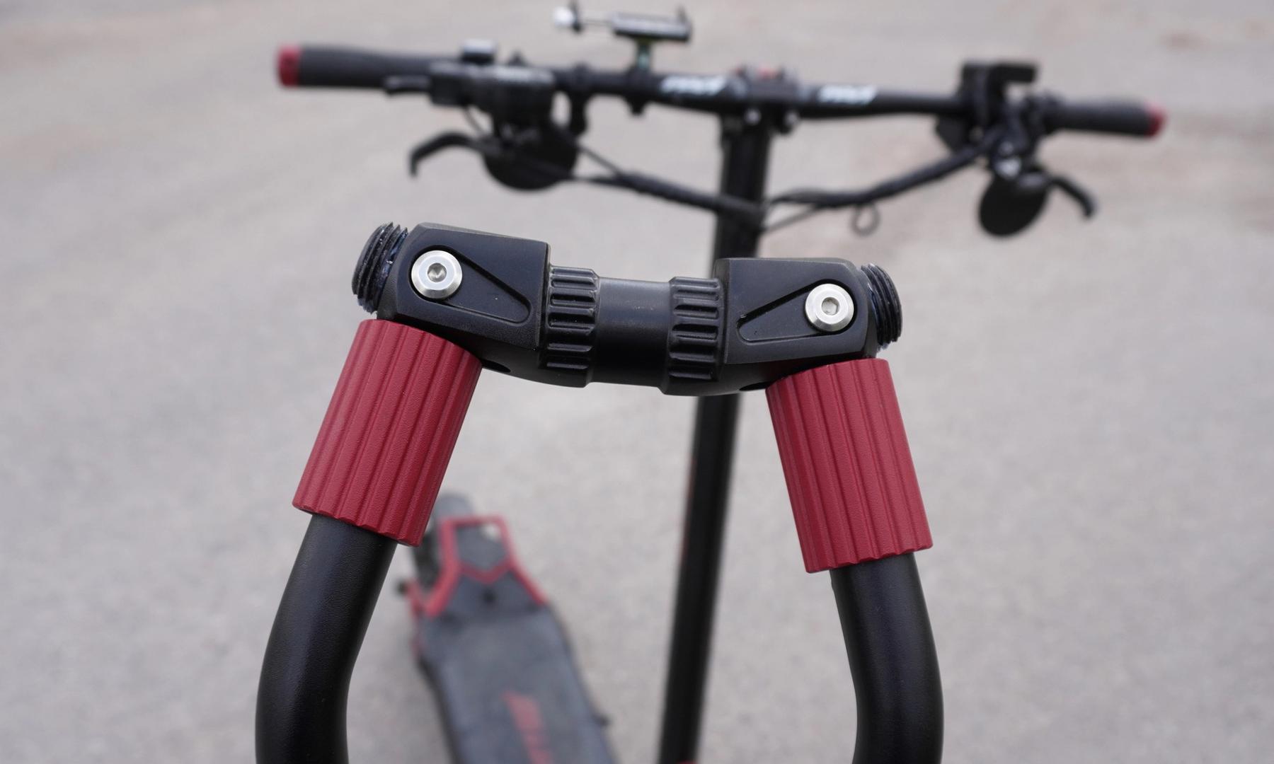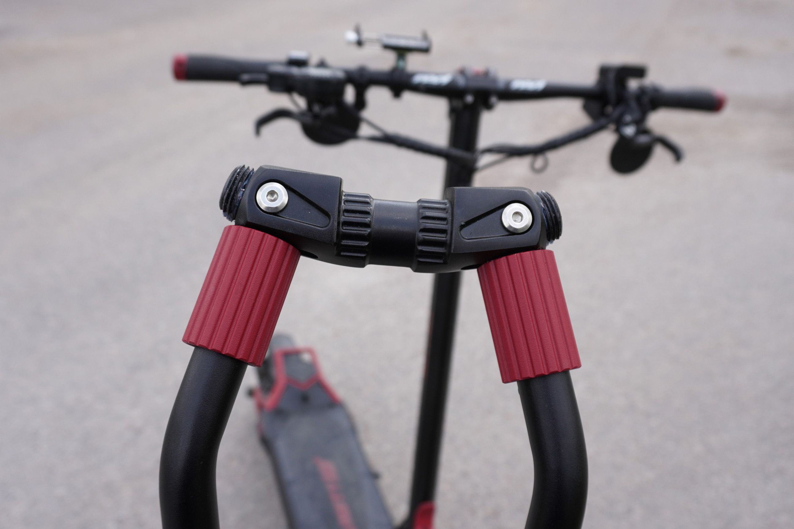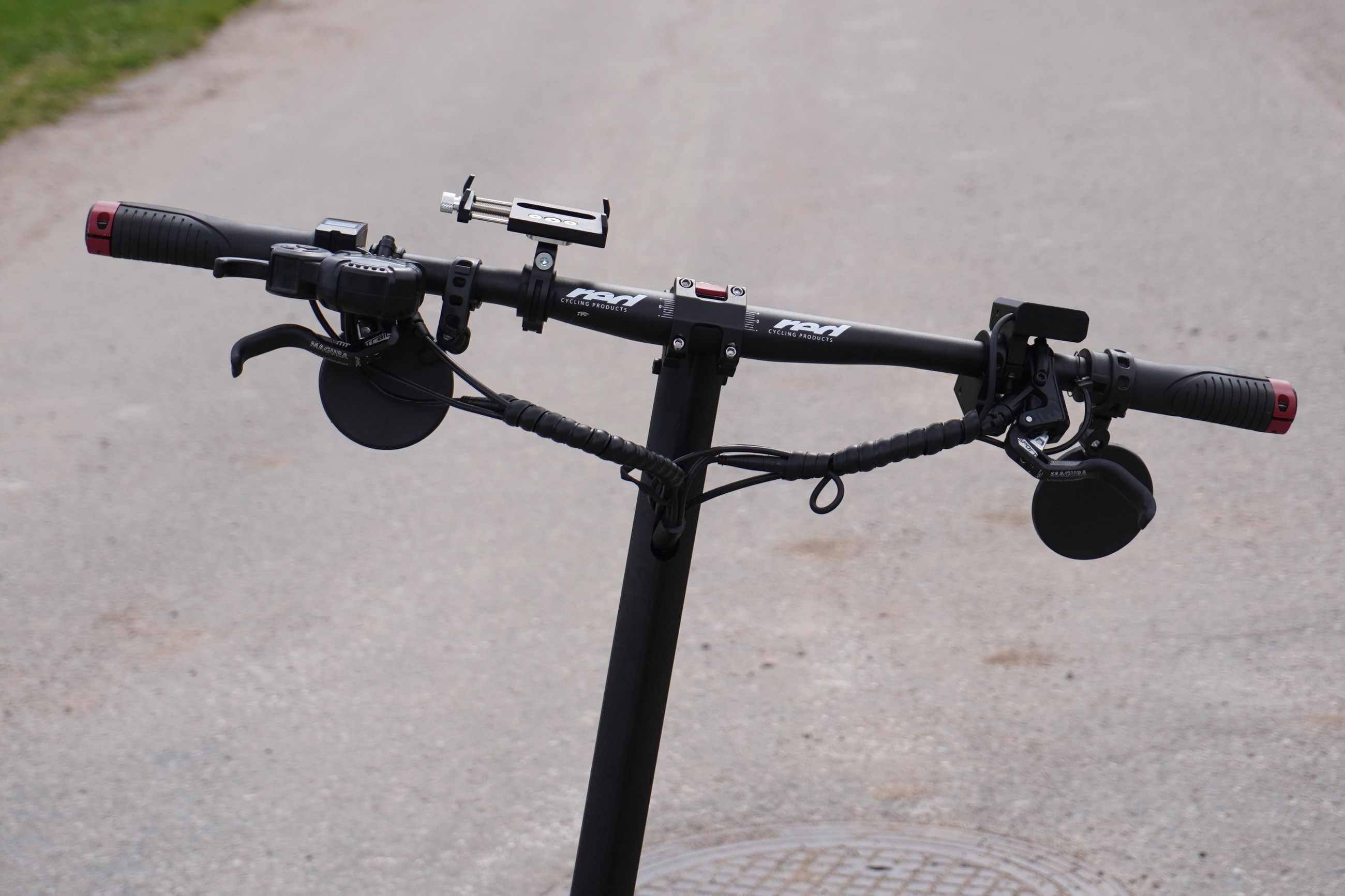Man köper inte en sådan här scooter för att den ska vara lätt att fälla ihop, så skippa det ursprungliga styret och sätt på ett bredare istället.