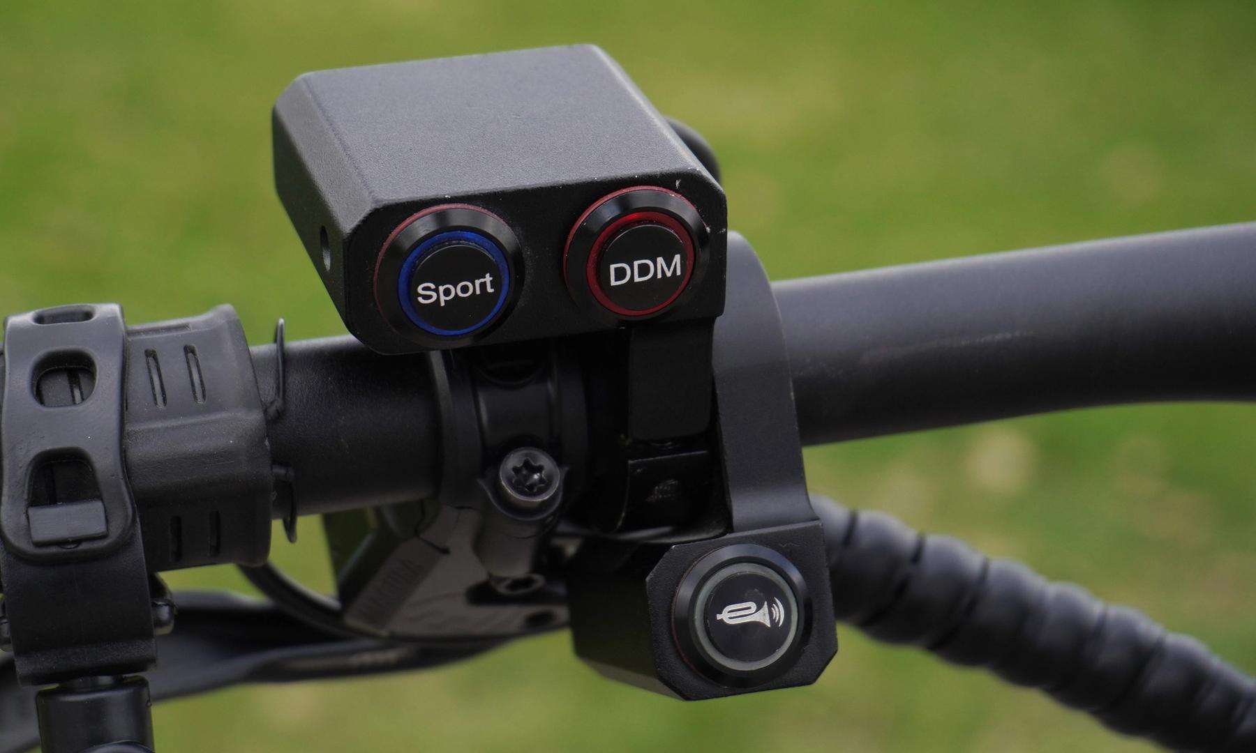 Det finns också ett sportläge, som du kan se på knappen i bilden där det står "Sport". Den brukar också kallas för "rolighetsknappen". Om du trycker på den går scootern direkt från det aktuella körläget till läge 5, utan att passera gå.
