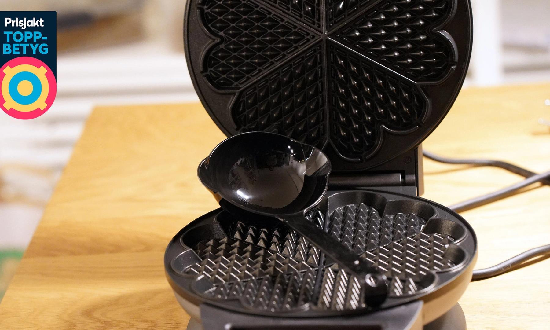 Det absolut trevligaste som kanske alla våffeljärn bör ha är en medföljande slev. Denna slev rymmer dessutom rätt mängd smet som krävs för din våffla vilket gör hela våffelmakeriet enklare. Den fungerar även perfekt för att fördela smeten över laggarna med hjälp undersidan av sleven!