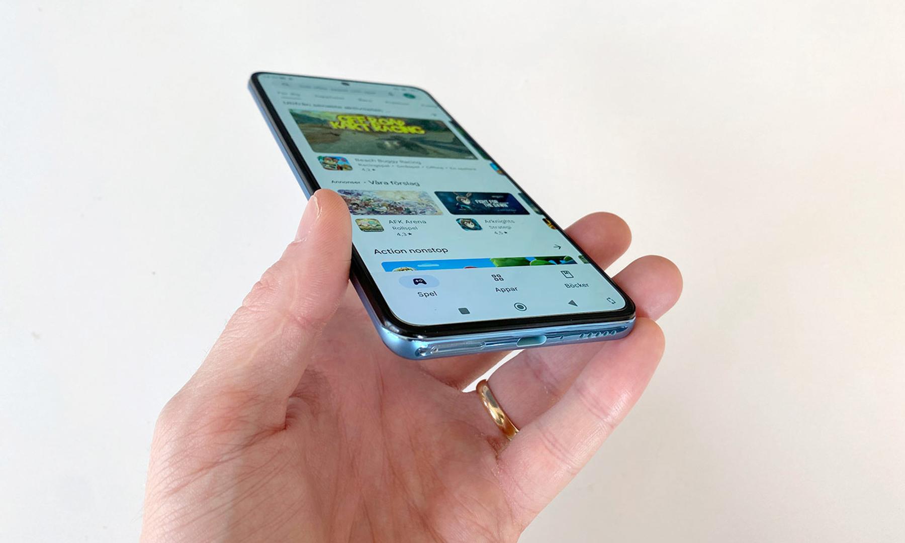 Utseendemässigt är 12T Pro en ganska diskret telefon som påminner rejält om vanliga 12 Pro som lanserades tidigare i år. Jag har testat den blåskimrande varianten av telefonen som också finns i en svart- och en silver-upplaga.