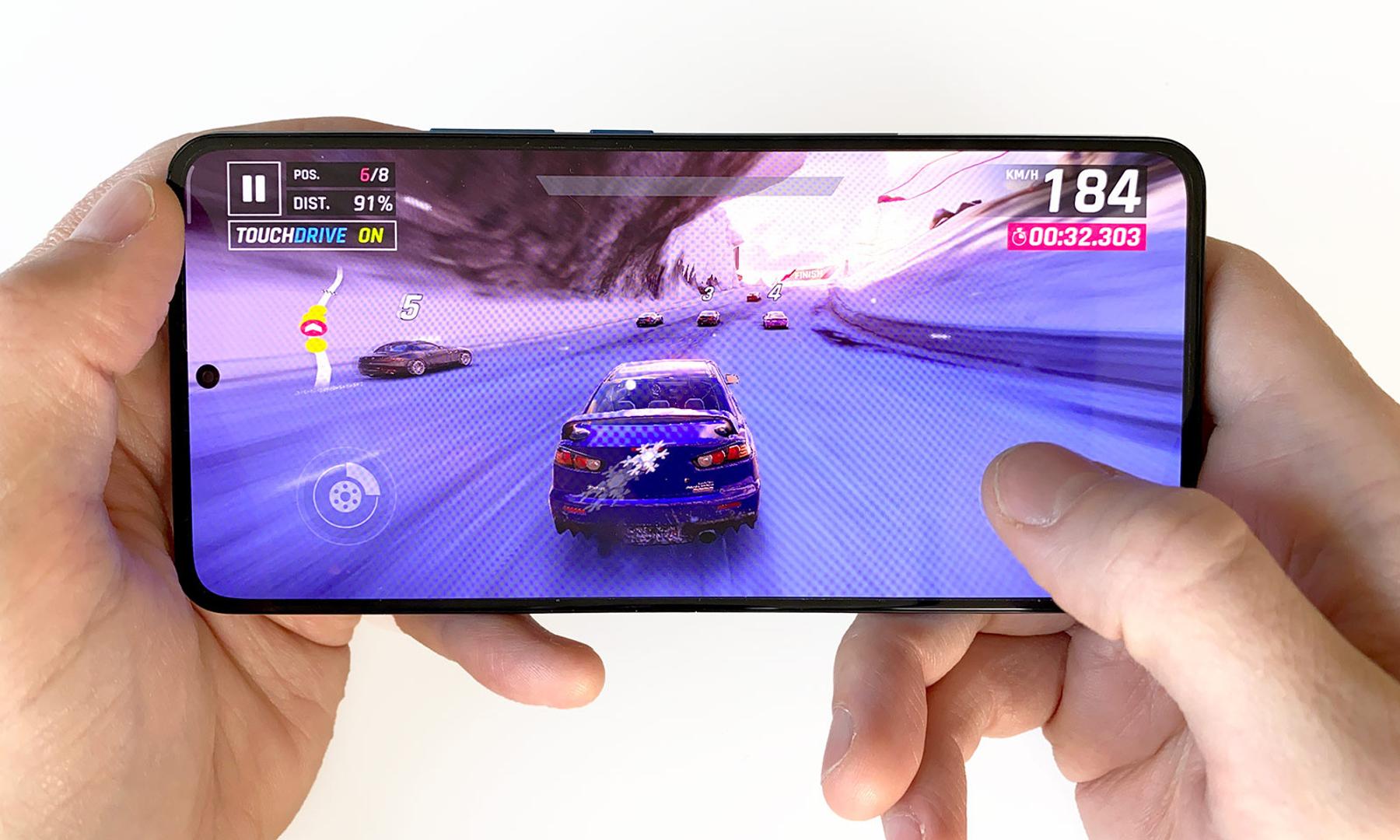 Telefonens framsida pryds av en 6,67 tum stor AMOLED-skärm med upplösningen 1220 x 2712 pixlar. Vilket ger en pixeltäthet på 446 ppi. Skärmen har en dynamisk uppdateringshastighet på upp till 120 Hz och kan således både öka uppdateringshastigheten för att skapa en smidigare användarupplevelse samt sänka hertz-talet för att spara ström. Skärmen stöder vidare Dolby Vision och HDR10+. På vanlig svenska kan man säga att telefonen har en riktigt bra skärm som dessutom fungerar utmärkt i kombination med huvudkameran.