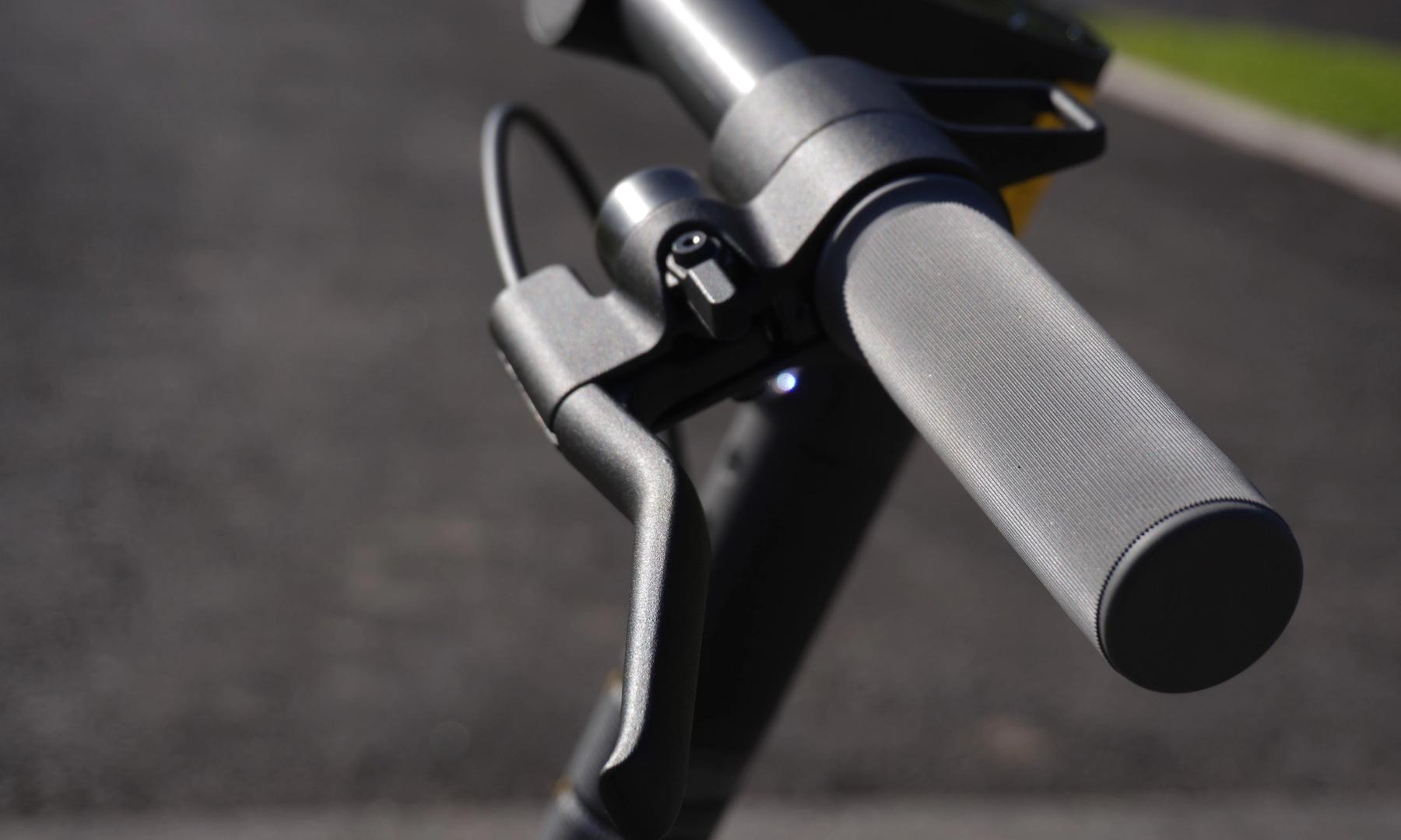 För att få stopp på scooterns framfart finns det en trumbroms fram, och för bakbromsen kan du ställa in att få hjälp av den elektroniska ABS:en.