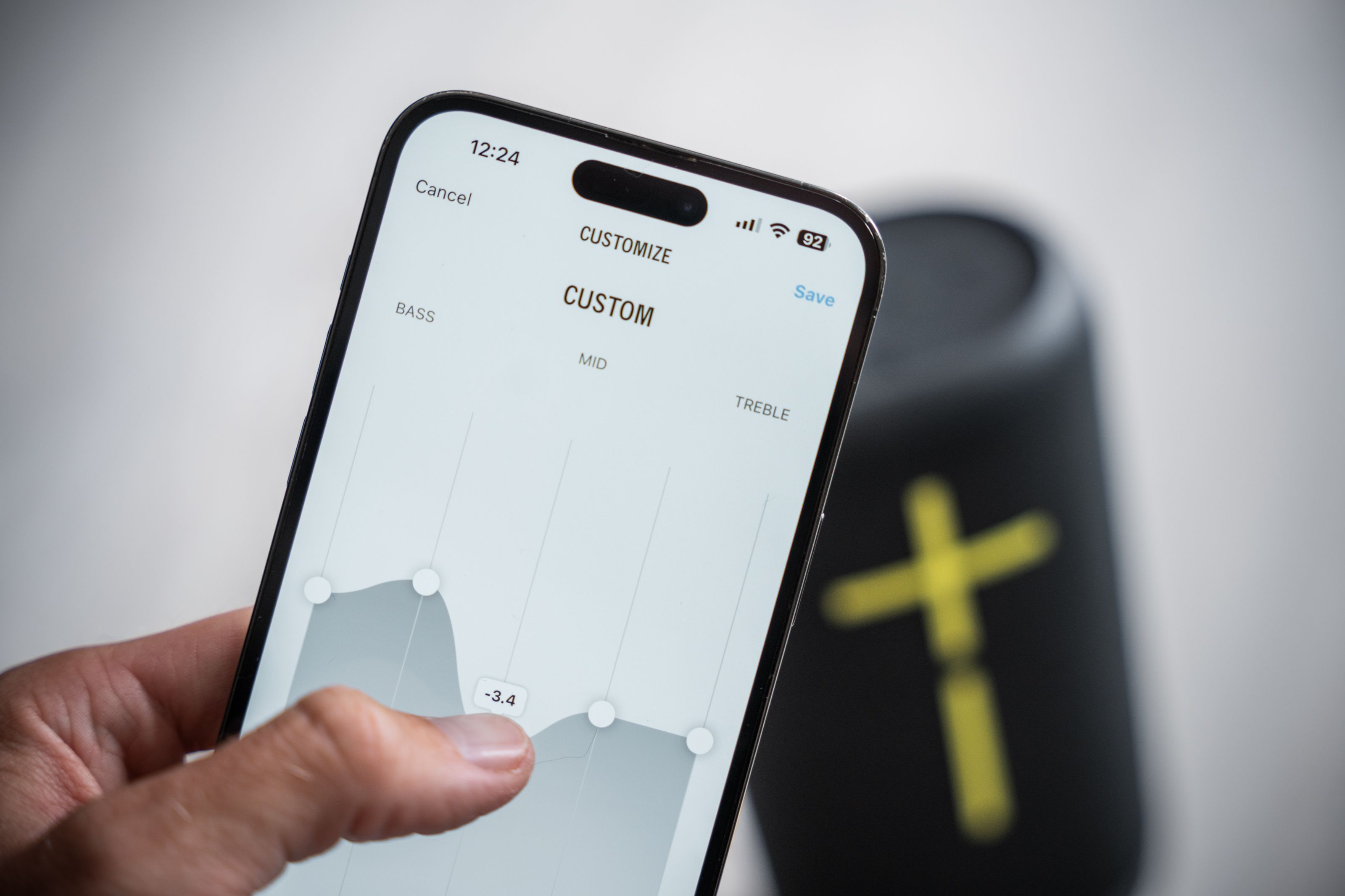 I smartphone-appen (UE Boom) kan du ställa olika ljudpresets och även utnyttja en fiffig megafon-funktion, för att förstärka din röst in i telefonens mikrofon via högtalaren. Det går också att, via appen, länka ihop olika kompatibla UE-högtalare för att spela tillsammans - liknande vad JBL erbjuder.