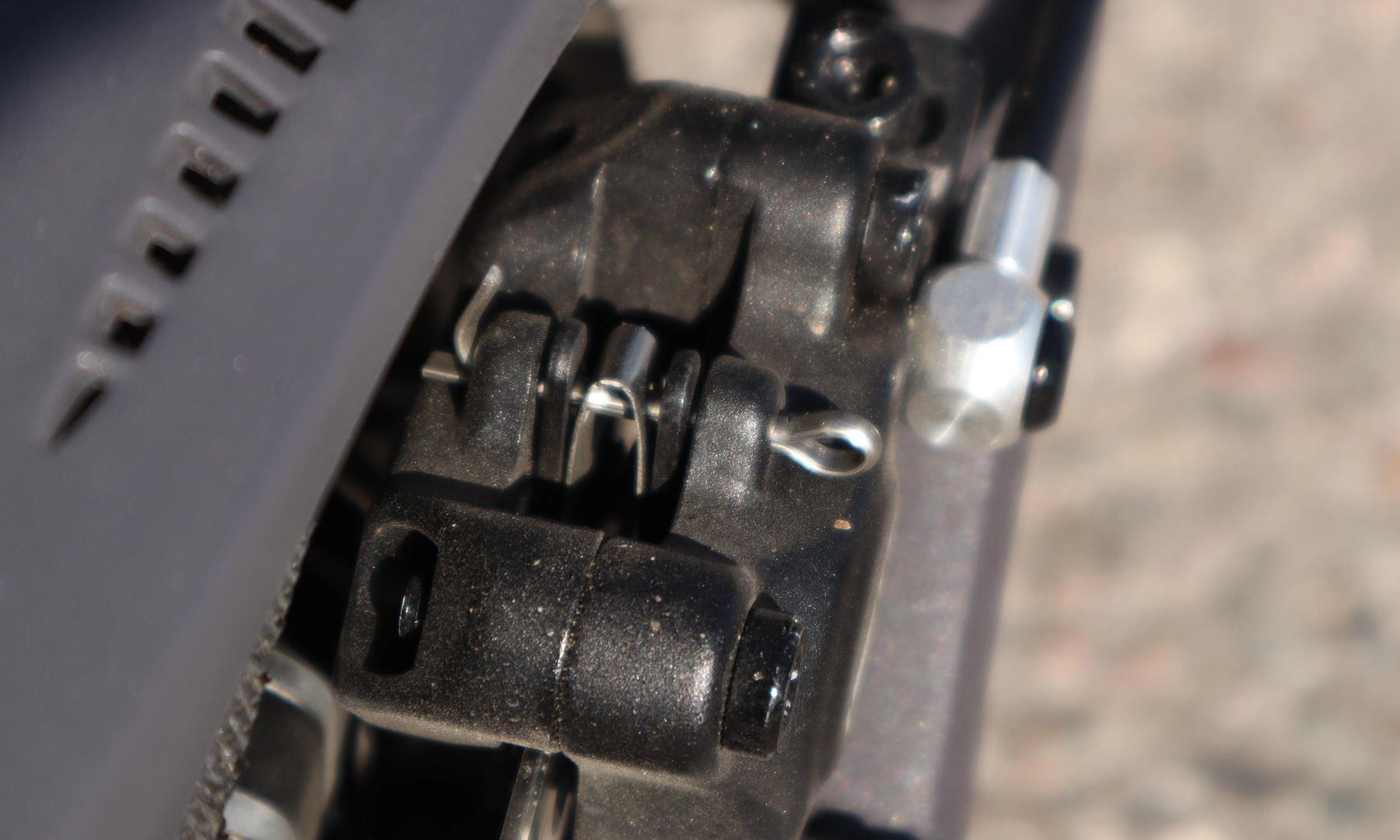 Det sitter fjäderdämpning både fram och bak på scootern, och i den här uppgraderade versionen kan man numera även ställa in rebound via en enkel ratt. Det ökar möjligheterna att anpassa scootern efter sin egen körstil.