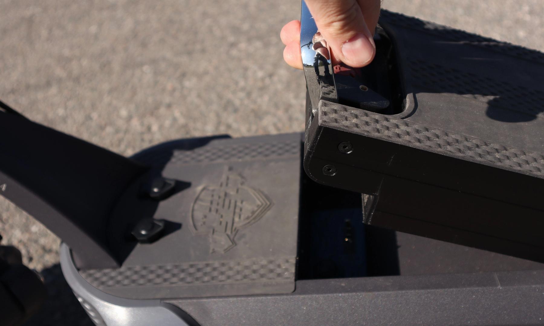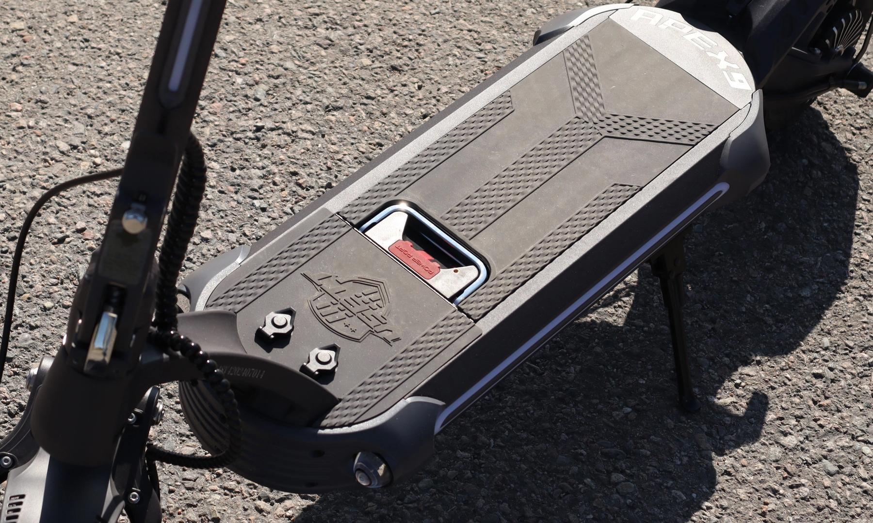 En av de nya funktionerna på Vsett Apex-linjen är det löstagbara batteriet. Det gör det enkelt att ta med batteriet för laddning dit man önskar, medan scootern kan stå parkerad på ett annat ställe.