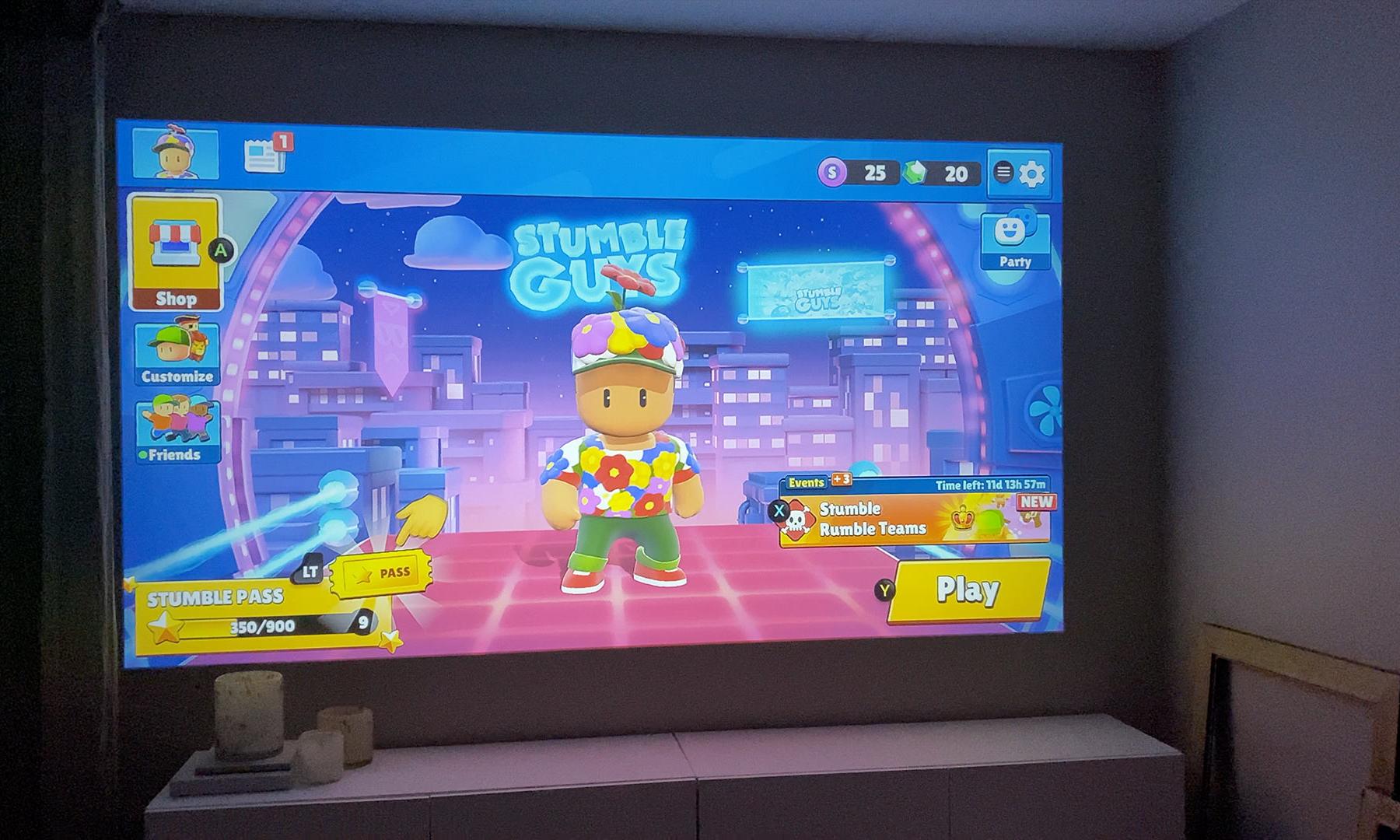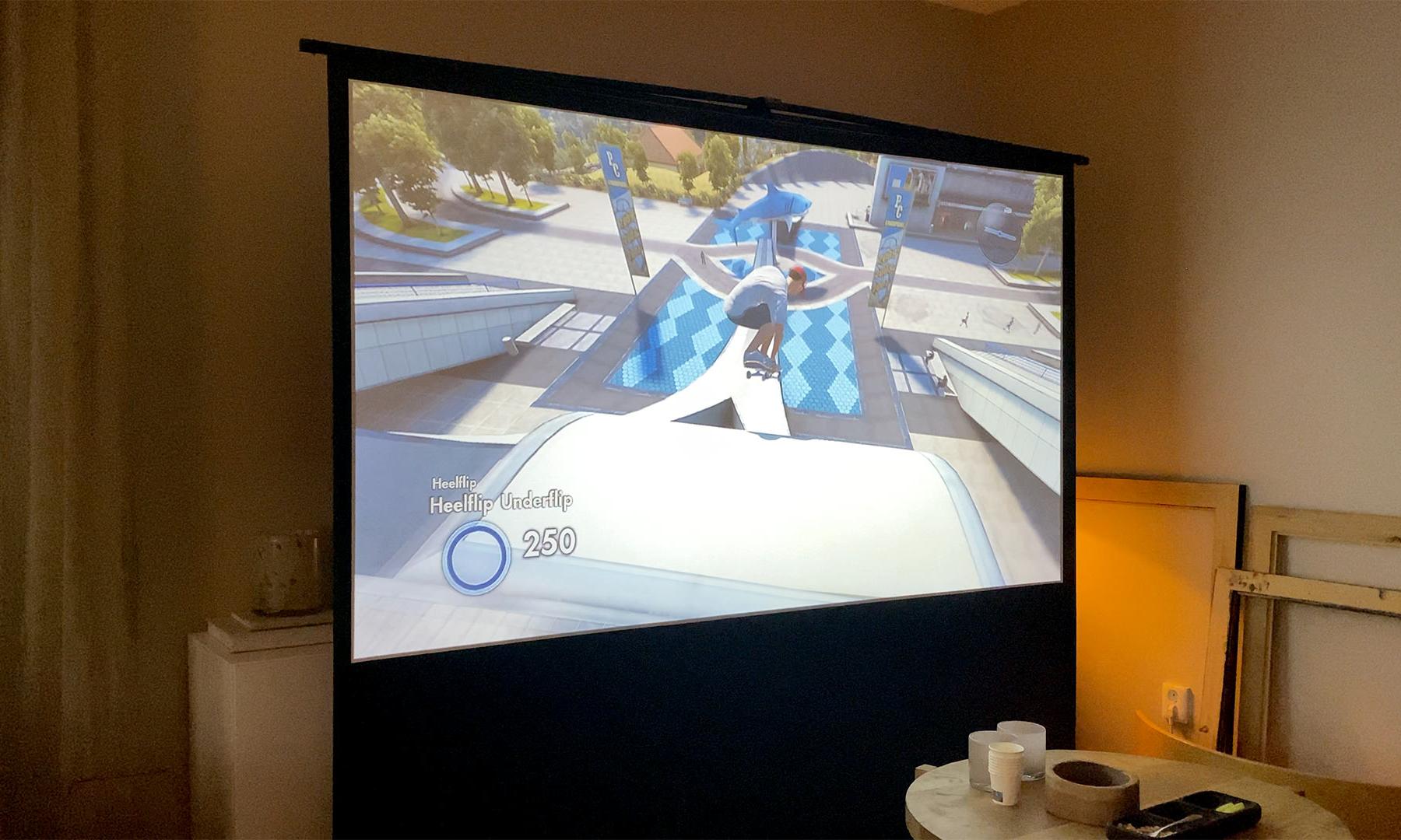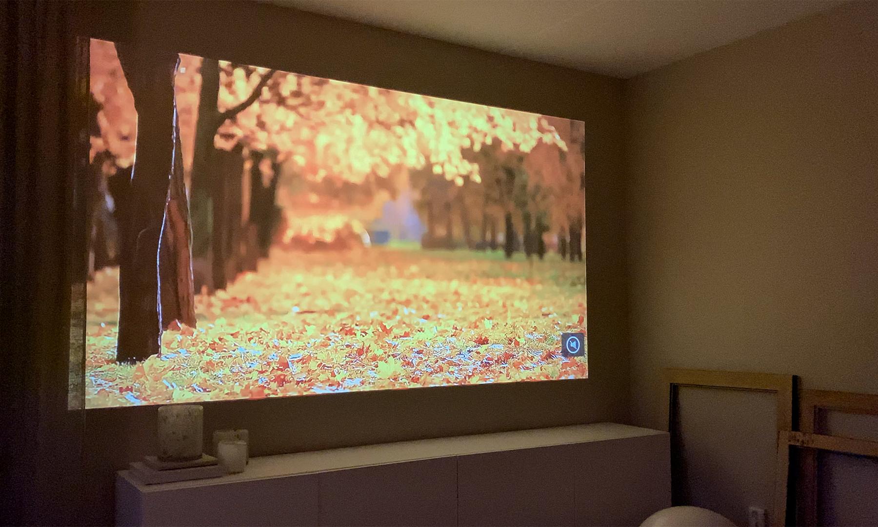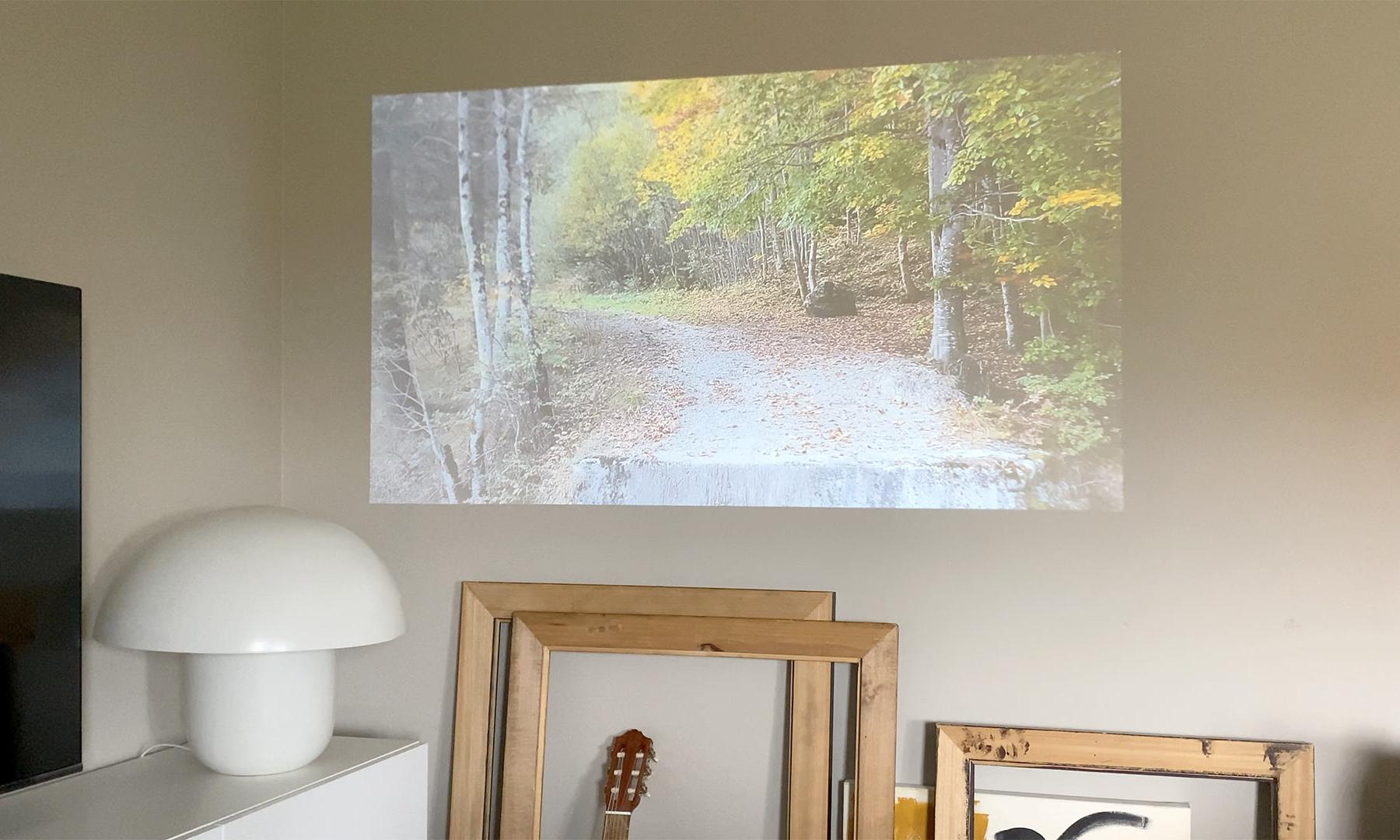 Jag har testat projektorn både direkt på vägg (i detta fall målad ljusbeige) och tillsammans med en 89 tum stor Pull-Up-duk från Kingpin. Här lämnar absolut duken ett bättre resultat jämfört projicering direkt mot vägg och framförallt kontrasten och även ljusstyrkan känns mer påtaglig och levande. Däremot skulle jag inte påstå att det är natt och dag och så länge du har en ordentligt plan, ljus väggyta kan Mozart 1 Pro faktiskt leverera en godkänd bild även direkt på väggen. Åtminstone (och återigen) så länge det är mörkt runtomkring.