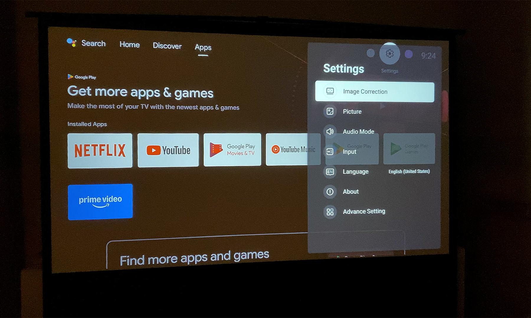 Sett till installation av projektorn gör hurusom Android TV en enkel sak av detta och har du någon gång startat upp en Android-baserad TV-apparat är upplägget i princip exakt detsamma här.
