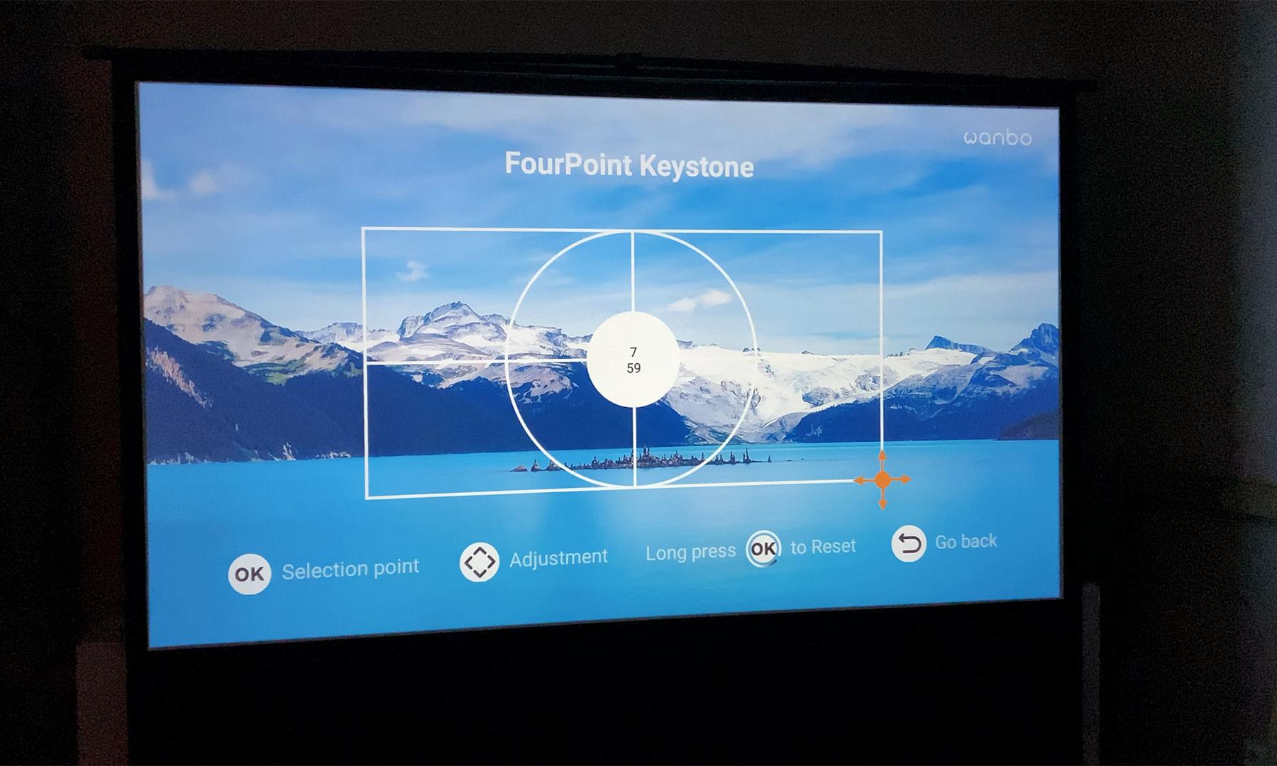 För placering i en vinkel gör den automatiska keystone-korrigeringen visserligen ett dugligt jobb att räta upp bilden. Däremot påverkas kvaliteten åt det sämre hållet desto mer snett projektorn står i förhållande till ytan bilden ritas upp mot och i de flesta vinklar är det omöjligt att få en skarp bild över hela ytan.