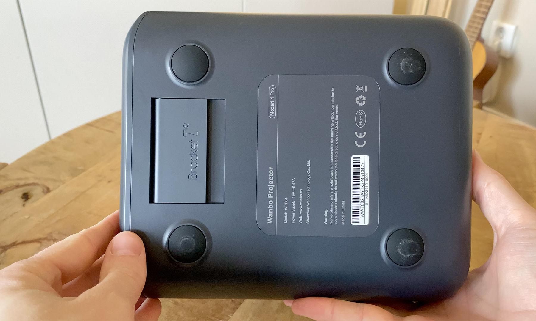 Jag har testat den blå varianten av projektorn som också finns i en ljusare färg. Materialmässigt är det en hel del plast. Den är däremot av god kvalitet och överlag lämnar Mozart 1 Pro ett gott yttre intryck. Värt att nämna är även det utfällbara, lilla stödet på undersidan som vinklar den främre delen av projektorn 7 grader uppåt. En välkommen hjälp för att öka höjden i projiceringen de tillfällen de behövs.