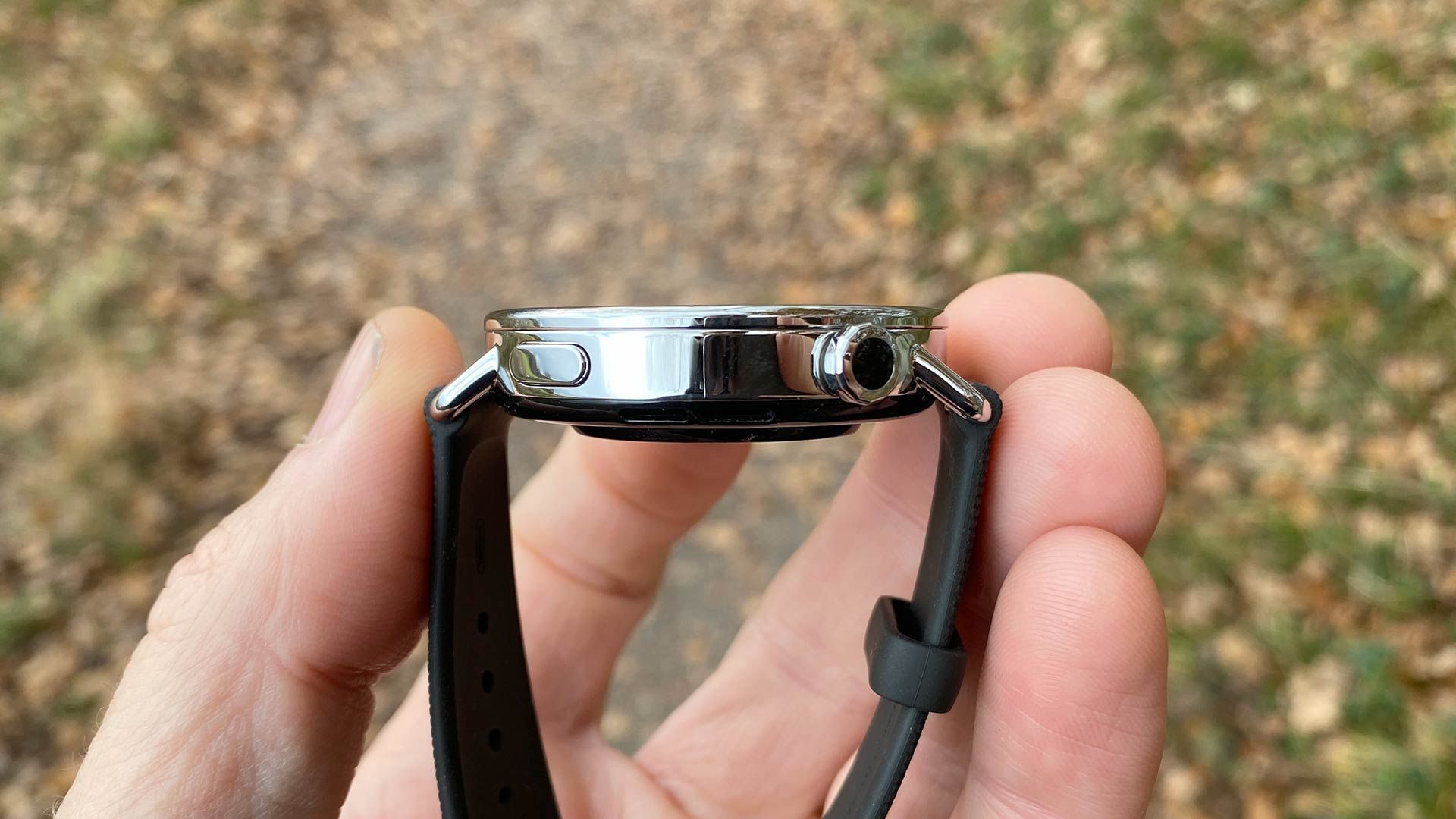 Kontrollmässigt finns, precis som hos Watch S4, en knapp och en roterbar krona som även den går att trycka ned. Knappen fungerar som en snabbgenväg till en typ av kontrollcenter-meny och kronan används både som knapp, för att öppna menyn med appar, samt för att scrolla uppåt och nedåt. Här fungerar scroll-funktionen okej som komplement till skärmens touch-funktionalitet. Däremot är den stundtals något ryckig och jag har faktiskt föredragit att kontrollera klockan direkt via skärmpanelen.