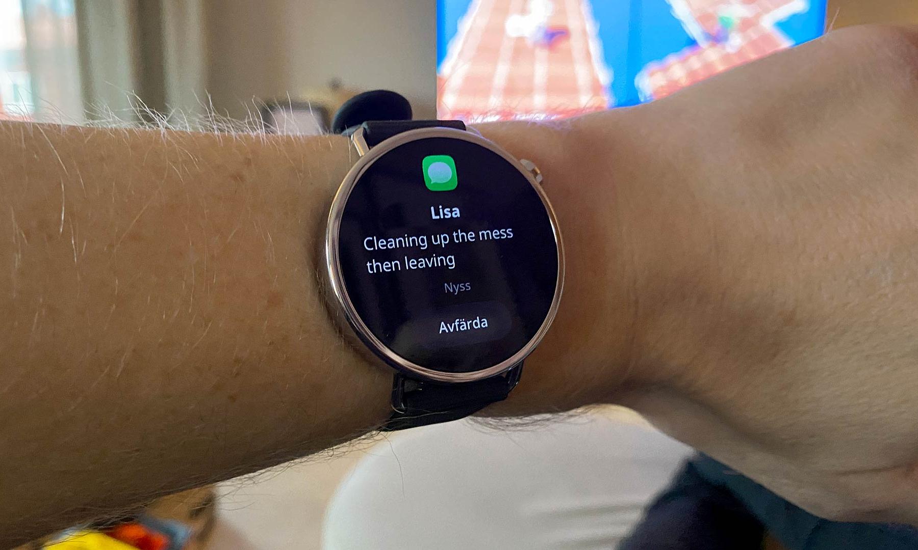 Tack och lov finns ändå de flesta vanliga smartklocksfunktioner på plats. T.ex. fixar Watch S4 41 mm att visa notiser och meddelanden (från både iOS- och Android-telefoner) och det går även att föra samtal via klockans inbyggda mikrofon och högtalare. En förövrigt duglig upplevelse, även om jag hade önskat att högtalaren var något mer högljudd. Det går tråkigt nog dock inte att svara på t.ex. meddelanden.