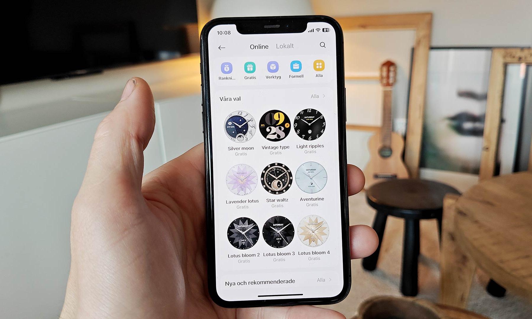 I och med att 41 mm-varianten av klockan blivit mindre har även skärmen krympt något från 1,43 tum hos vanliga S4 till 1,32 tum hos 41 mm-klockan. I övrigt står sig specifikationerna dock likvärdiga och skärmen, som är av AMOLED-typ, erbjuder både en skarp upplösning om 466 x 466 pixlar, 60 Hz uppdateringshastighet och en fullt duglig ljusstyrka på 1500 nits. Här har jag faktiskt inte mycket att klaga på. Utan allt är kontrastrikt och detaljerat. De många urtavlorna som finns tillgängliga via den tillhörande Mi-appen håller dessutom en god kvalitet och följer många samma trevliga designuttryck som själva klockan.