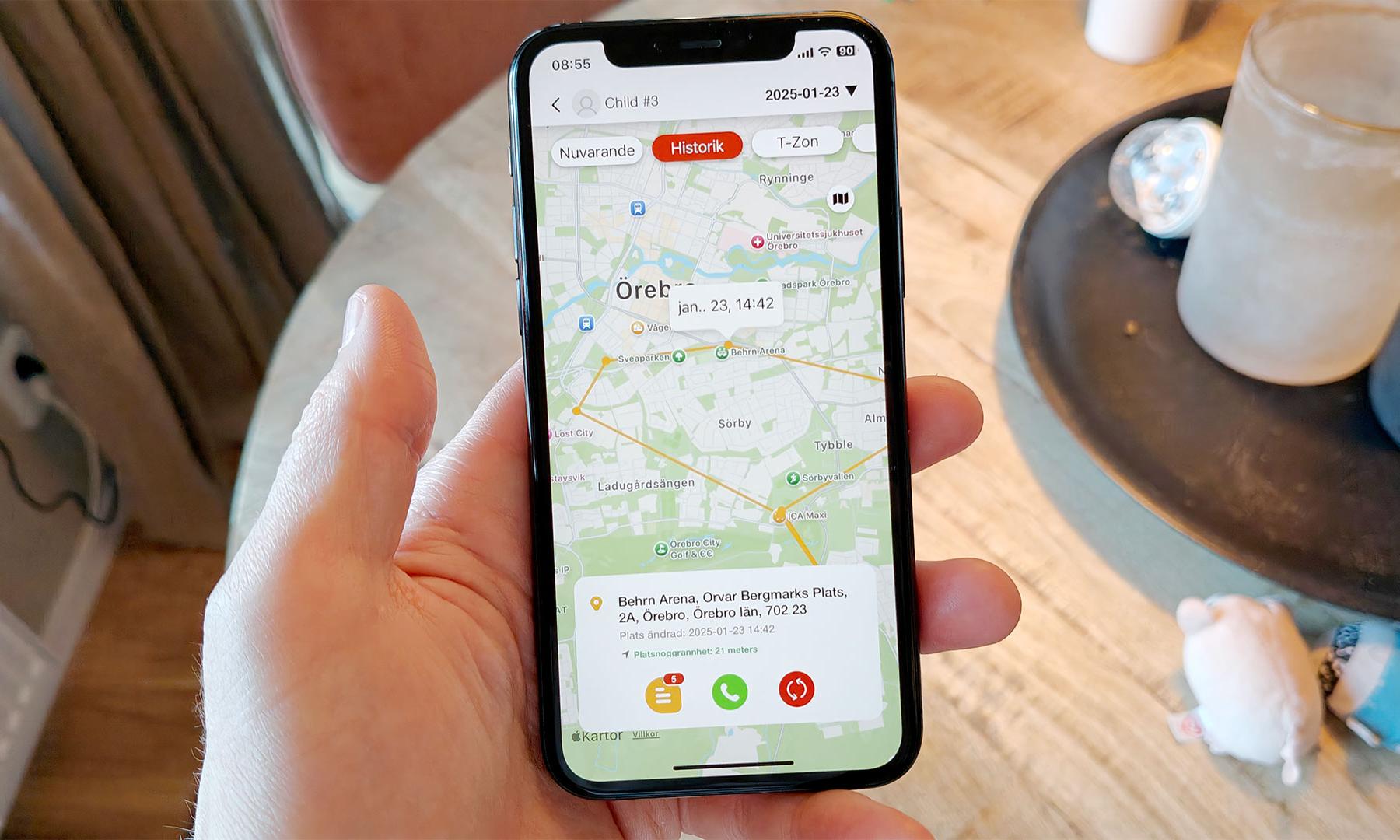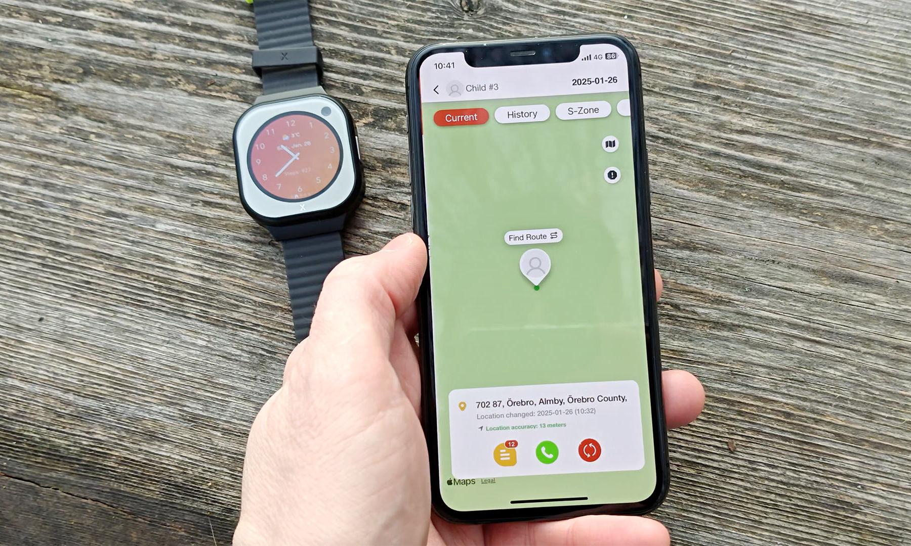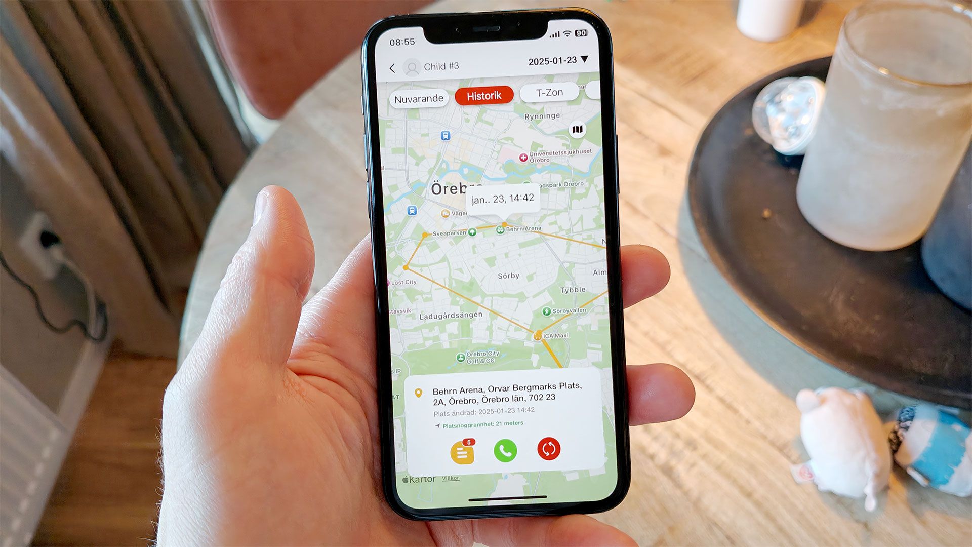 Funktionsmässigt går det givetvis och precis som hos övriga Xplora-klockor också att spåra klockans position via appen. Här måste jag säga att spårningen fungerat utmärkt under tiden jag testat klockan. Någon gång har klockan studsat iväg till en felaktig position, men detta har alltid snabbt korrigerats efter några sekunder. Det går också att se positionshistorik för tre dagar bakåt för att se var klockan varit vid en viss tidpunkt. Därtill finns även en funktion för att live-spåra klockan för en ännu mer exakt position (på bekostnad av batteritid).