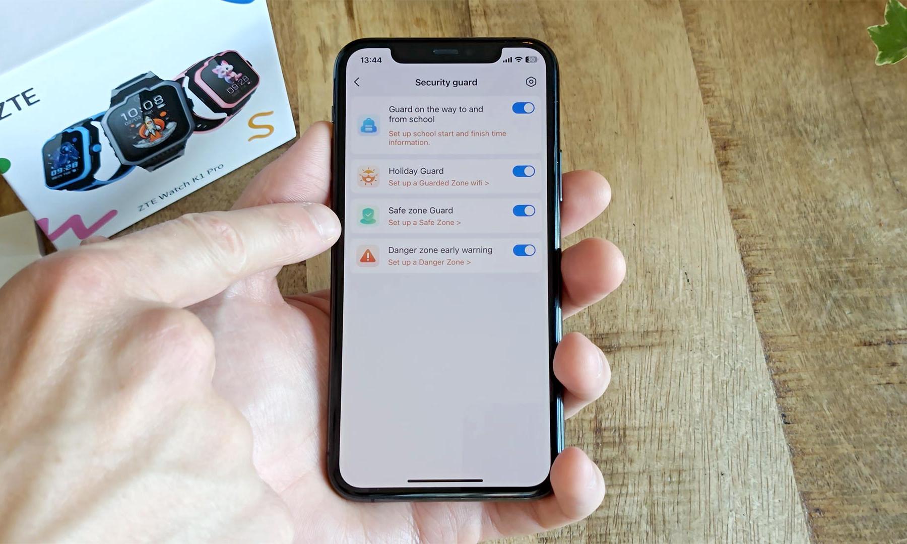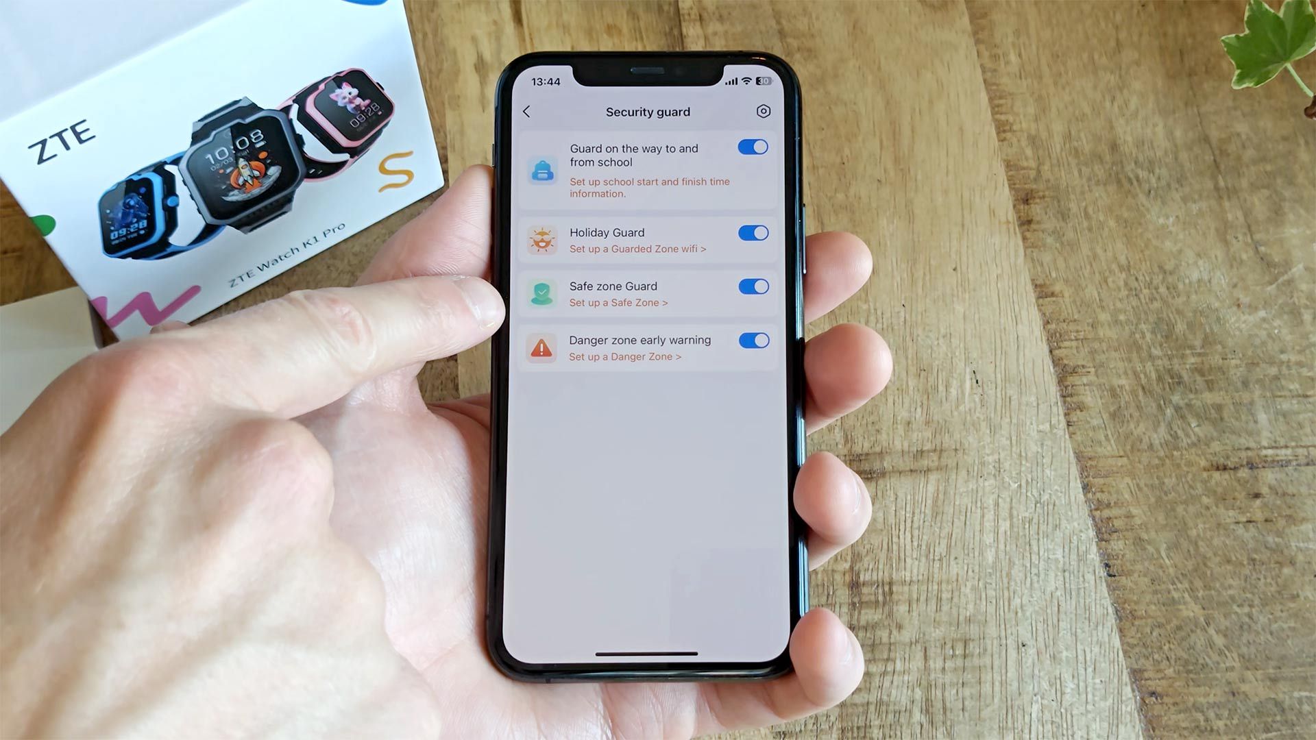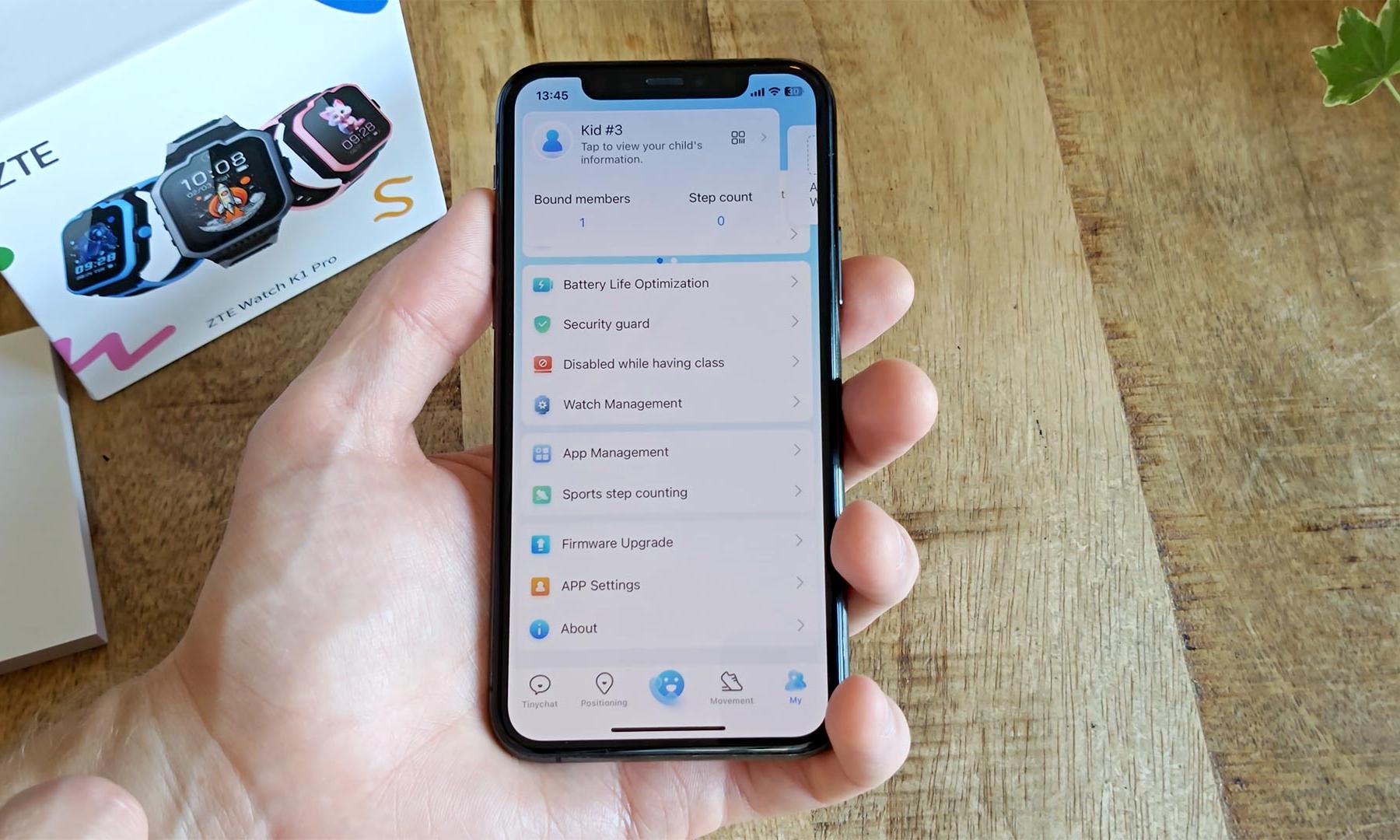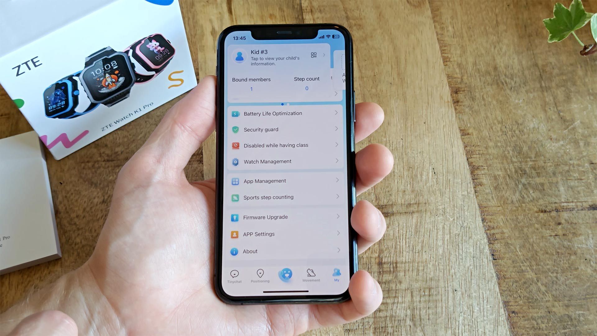 Med ett SIM-kort installerat får klockan oavsett direkt kontakt med nätverket och visar en liten QR-kod för att kunna synkronisera sig med den tillhörande appen, ZTE Kids, som finns för både iPhone och Android-telefoner. Här behöver man sedan lägga till en eller flera användare för att administrera inställningarna i klockan. Via nämnda inställningar går det också att välja om endast personer man själv lagt till i appen ska kunna kontakta klockan, eller om det ska vara fritt fram för alla nummer att ringa den.
