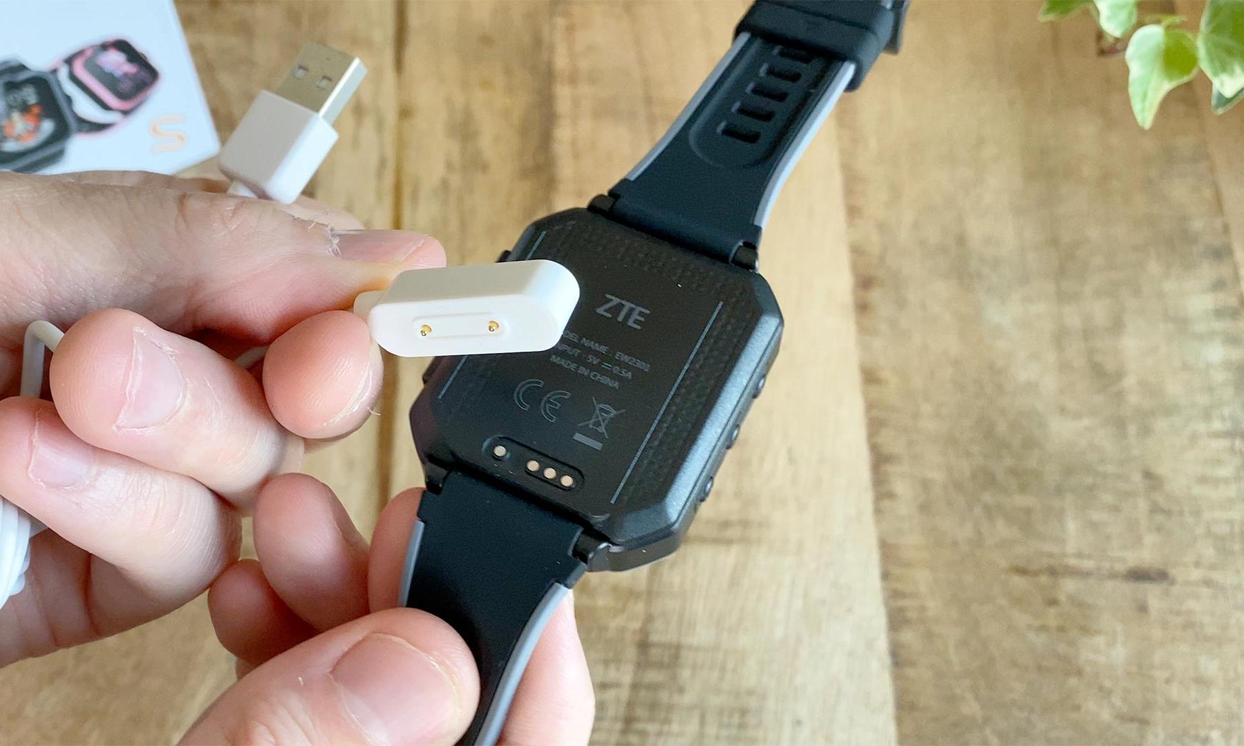 Laddar klockan gör man via en, något för svag, magnetkontakt med en vanlig USB-A-kontakt i andra änden. Laddningstiden är cirka 2 timmar från noll till hundra procent, så ingen snabbladdning här.
