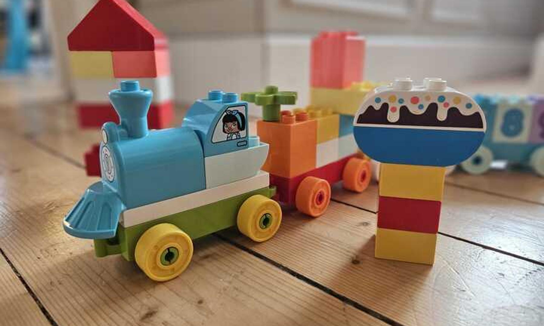 En ettåring är lite för liten för en tågbana men detta är en perfekt leksak att växa med.