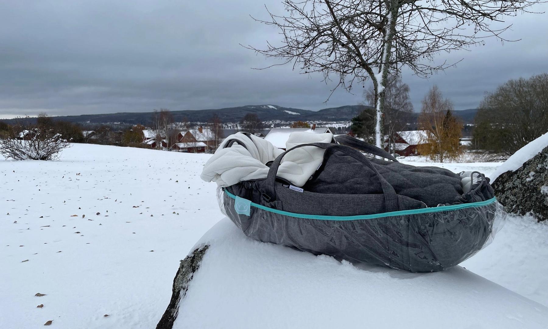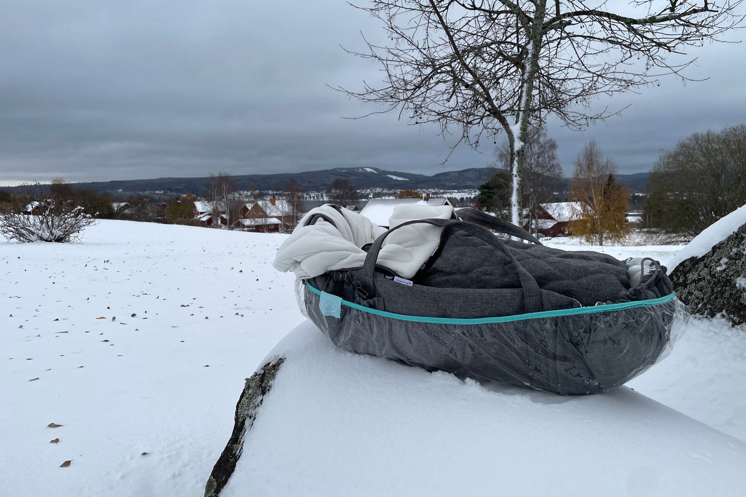 Den passar även perfekt i Najells egna Sleepcarrier (även där viker man upp huvudändan på åkpåsen för att den ska få plats).