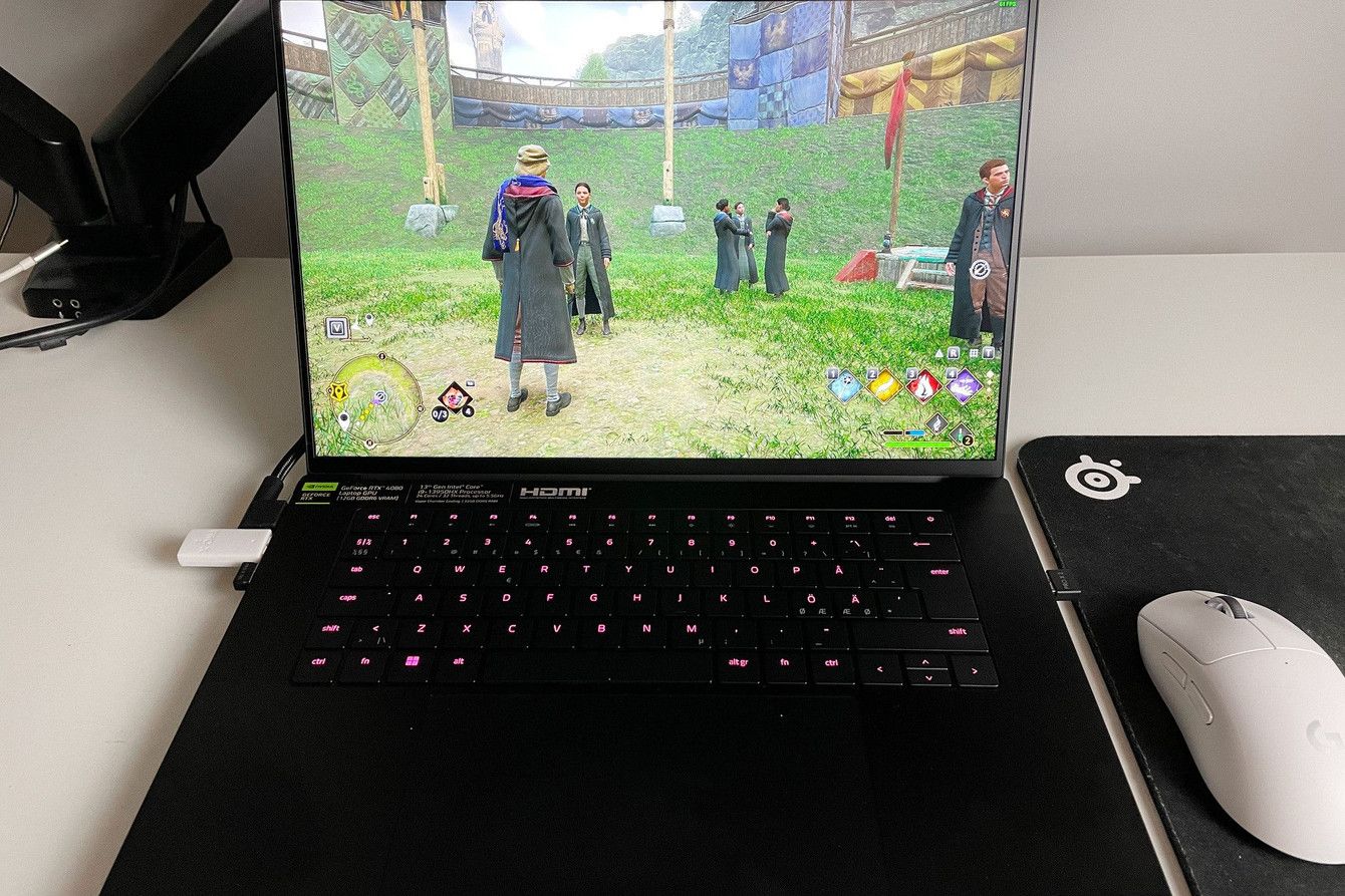 Men förutom det är den här datorn lite större. Skärmen är 17", har en IPS-panel och en upplösning på 2560x1600 med 240Hz. Datorn väger 3 kg så den är inte lika smidig att bära med sig som en mindre dator.