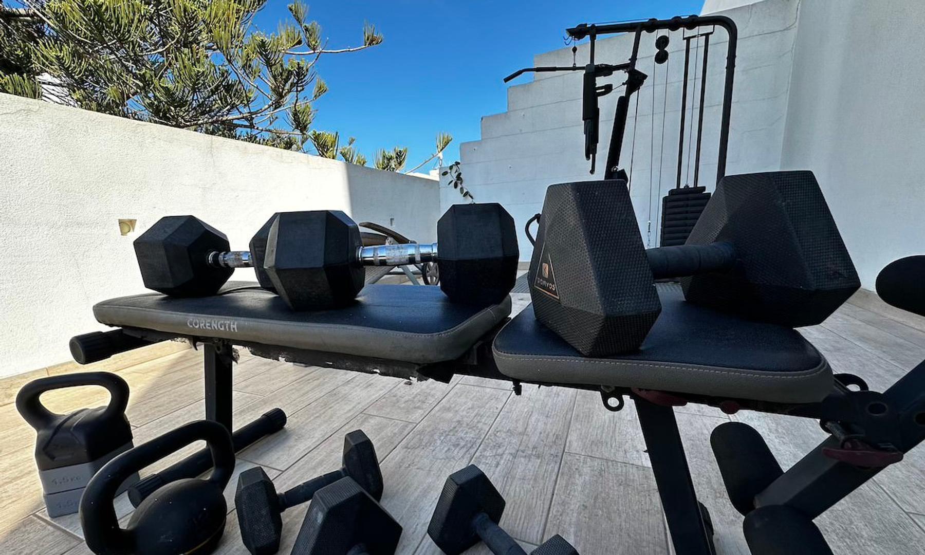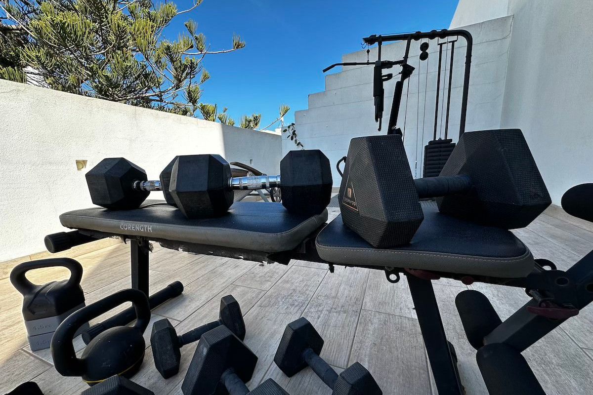 Även en skivstång har sin givna plats i hemmet för den som vill köra mångsidig styrketräning.