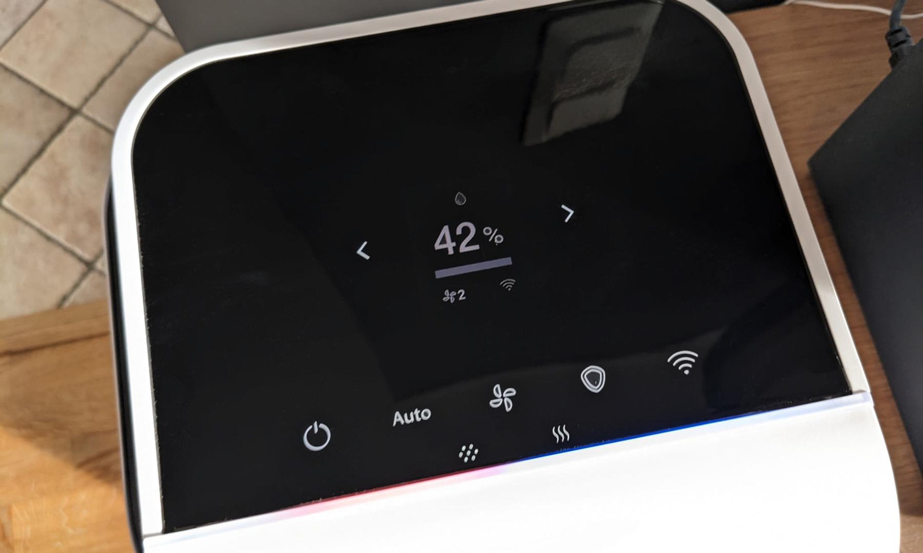 Denna luftrenare har en av/på-knapp och ger även en indikation på luftmiljön. Du kan se direkt om luftvärdena är dåliga i ditt hem, och den visar också när det är dags att byta filter samt mycket annat som man kan behöva veta utan att starta appen i mobilen.