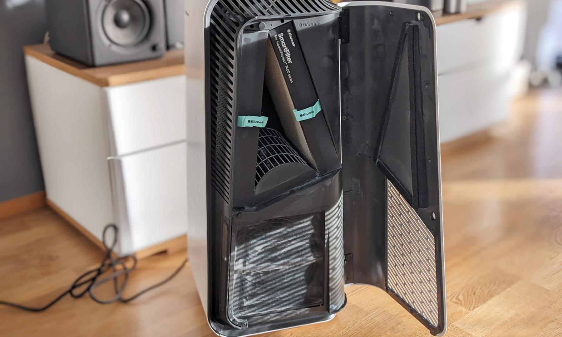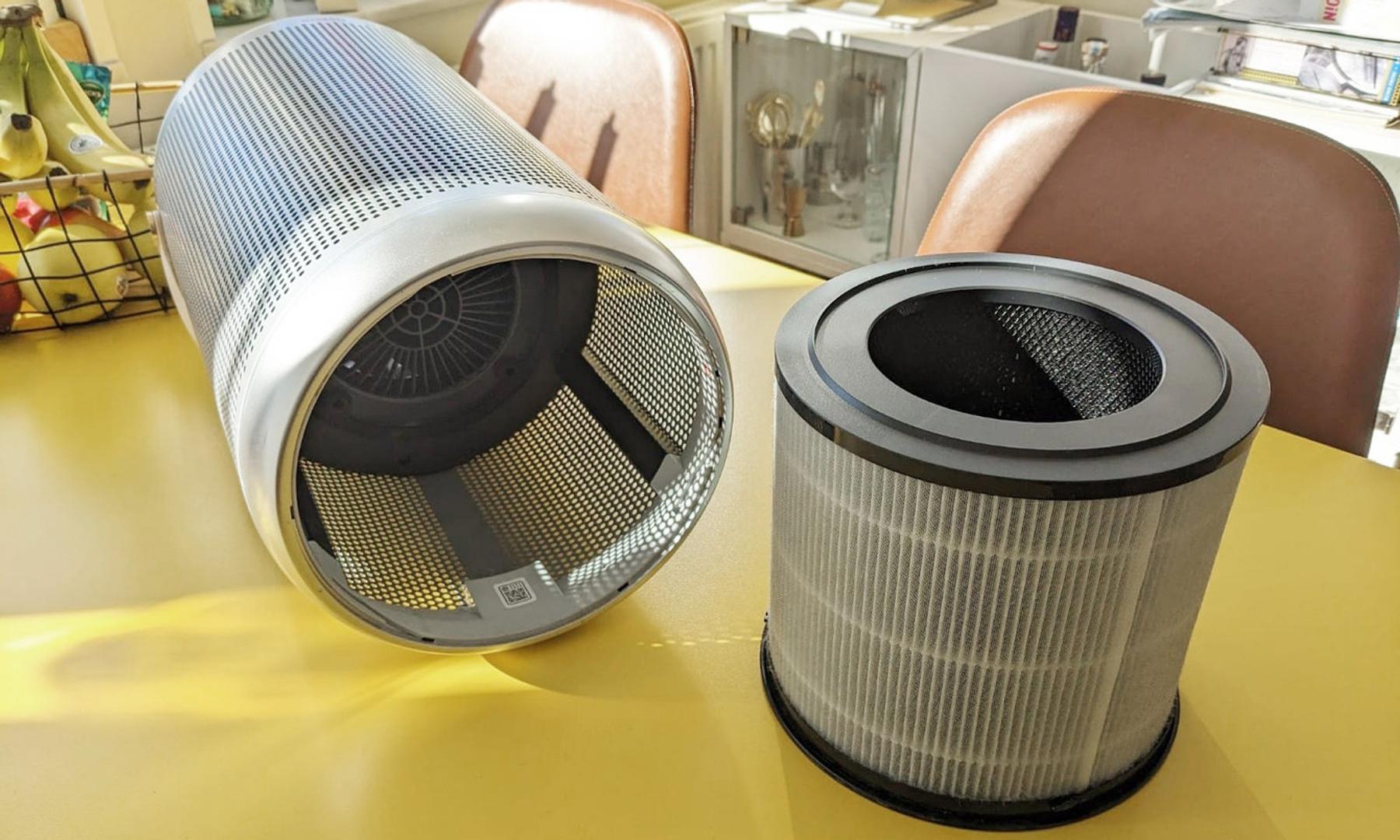 Den har tre filter som är mycket enkla att byta. Först finns ett dammfilter som du kan dra ut utan att ens stänga av luftrenaren. Det kan dammsugas eller sköljas av under duschen och skjuts sedan enkelt tillbaka på plats.