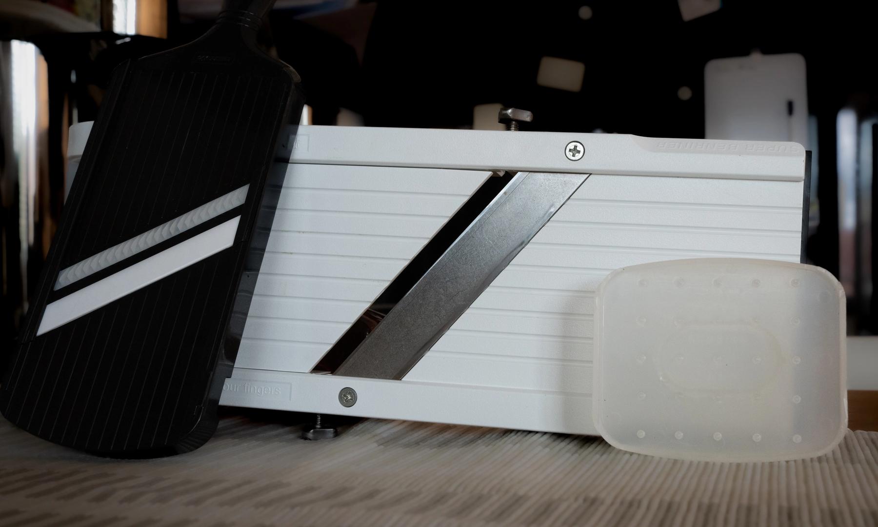Den står extremt stabilt på arbetsplatsen och är lite mer utav en arbetshäst än OXO Grips, på så vis jämför jag den med Benriner när det kommer till kvalité och livslängd. Men de är olika, denna har en ställning medans Benriners är en typisk handhållen variant som i sin tur tar mindre plats. Så tänk på det när du väljer mandolin.